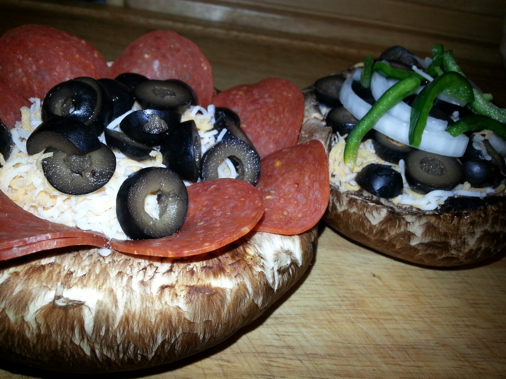 Looking for Low Carb Options? Gluten Free? Change your crust! There are many recipes for pizza crust using cauliflower and also recipes using cream cheese! You can also use a portabella mushroom cap as shown above for GREAT personal pizza options. Try one of these to lighten your carb load!