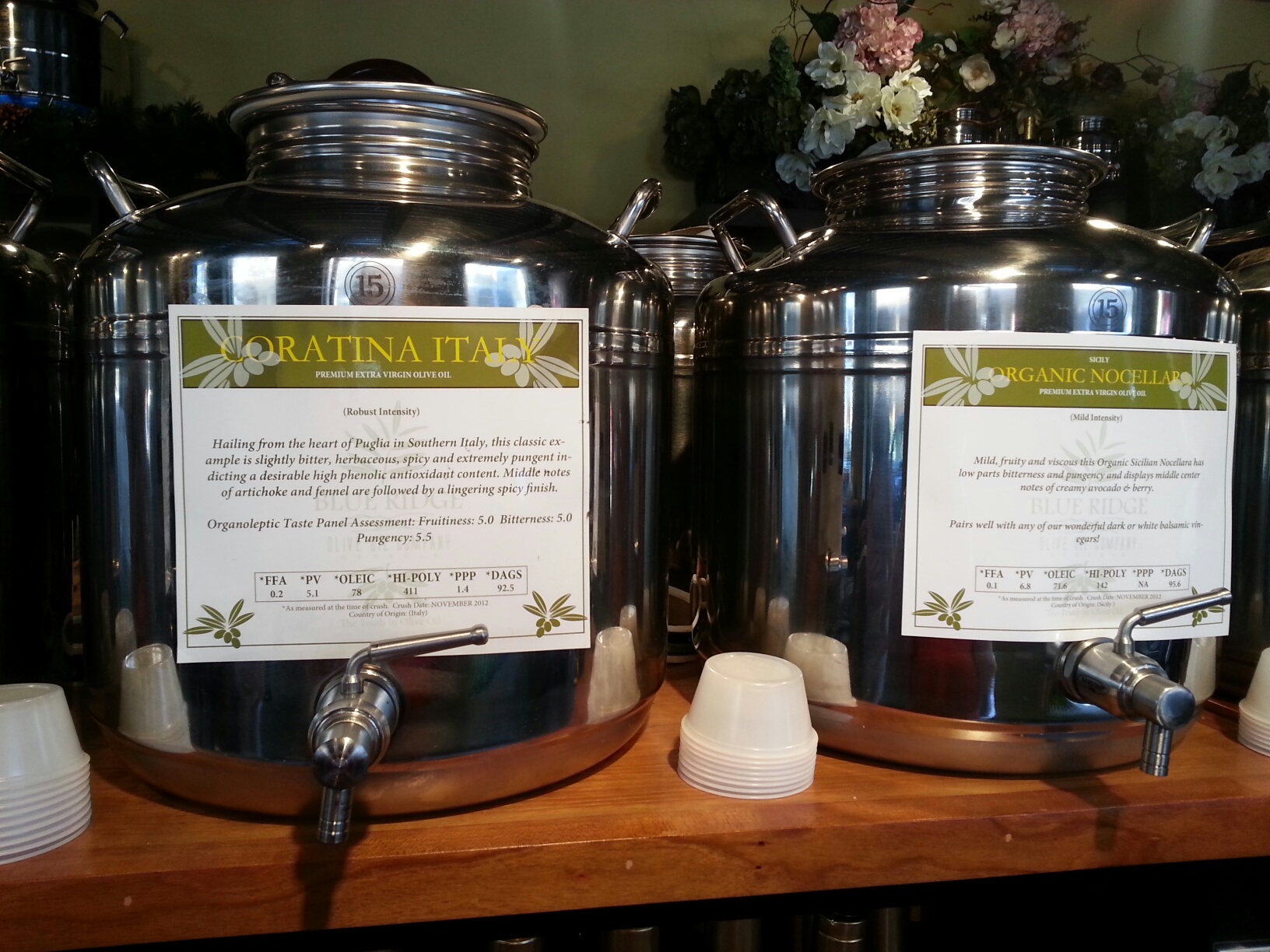 As if the perfect day could get any better, I managed a new Nicole Lee handbag and some AH-MAZING oils and vinegars from Blue Ridge Olive Oil Company. OMG. Just O.M.G. SWEET! My infused olive oil selections included Italian Coratina, a Tuscan blend and a Blood Orange. My balsamic choices this time were Dark Chocolate, Persian Lime and an incredible honey-ginger. I am in love, the head over heels kind. I could live in that store. Permanently. As in forever.