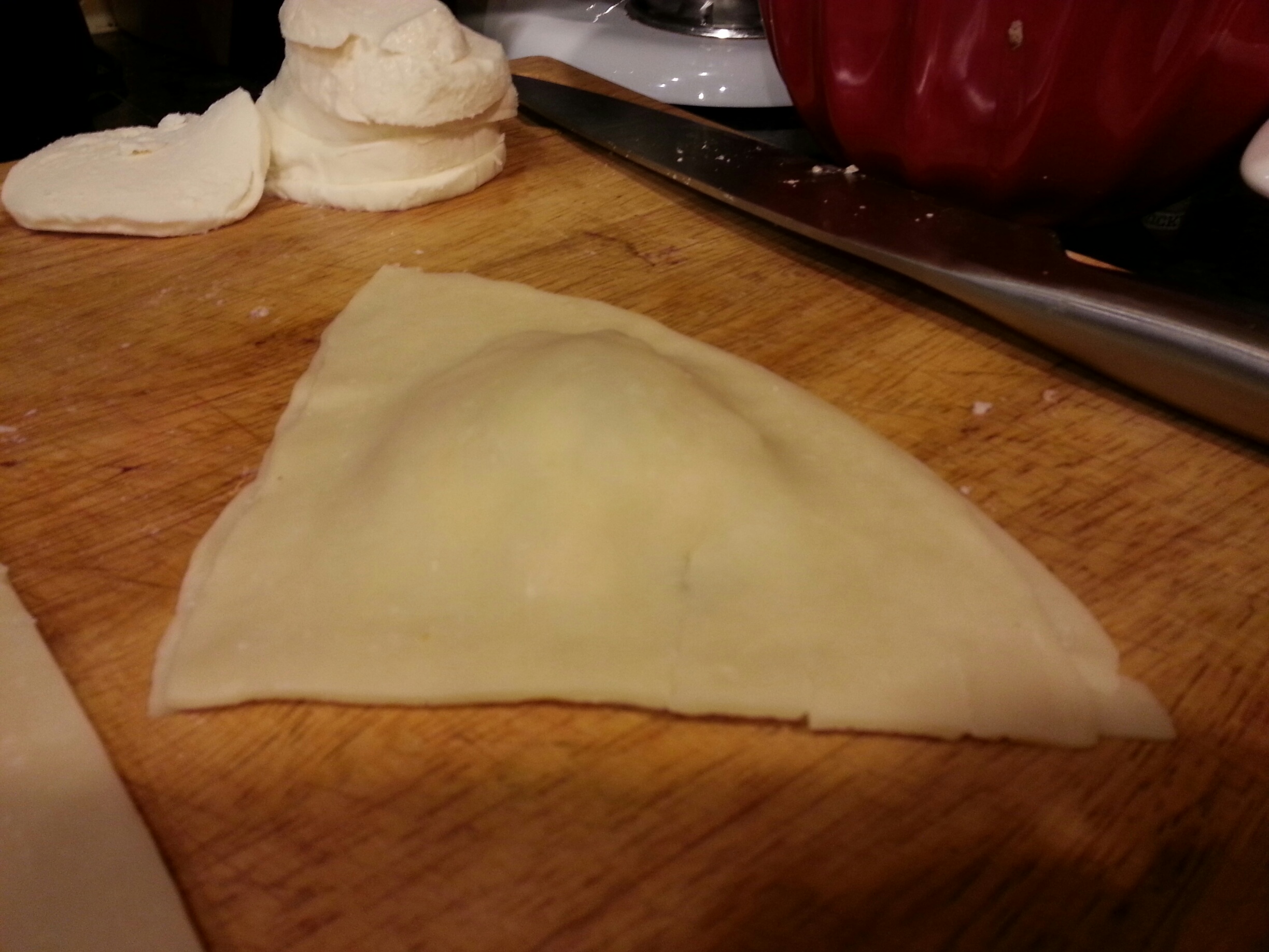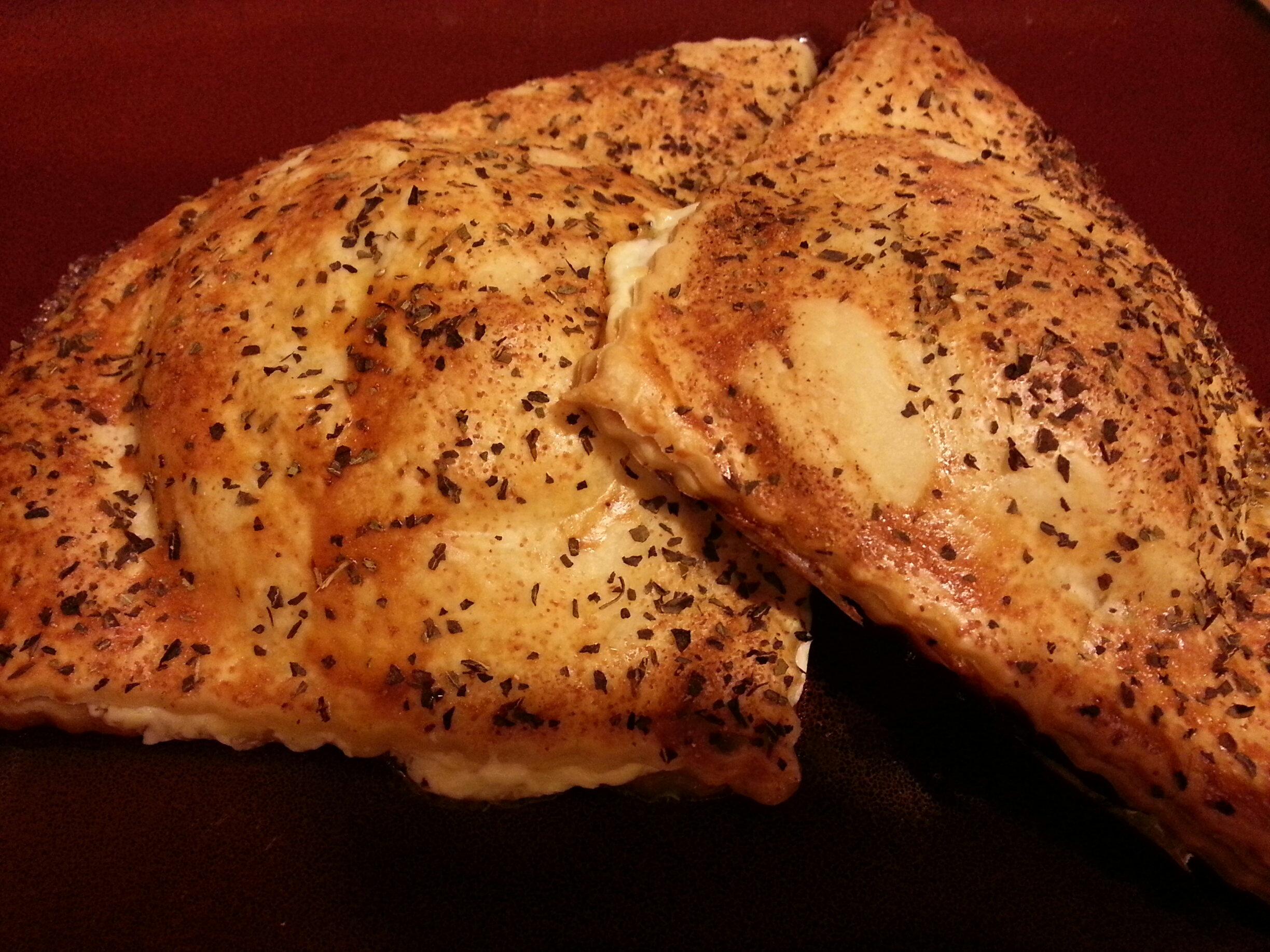 In a large mixing bowl, toss chicken with vinegar. Set aside. Roll out your pie crusts and cut into fourths. In the center of each sections, place a slice of cheese, and top with tomatoes, and 2 tbsp. of the chicken mixture. Add a fresh Basil leaf. Top each with the second set of pie crust sections and pinch ends closed. Trim the edges. Place on a prepared baking sheet and brush each with egg white. Sprinkle with Italian seasoning. Bake at 400 for about 20-30 minutes or until pie crusts are baked through and golden brown.