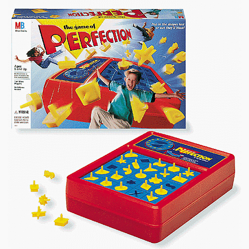Well, I. LOVED. IT. I loved finding the right piece to go in the right place. Another game I adored was Perfection. How about that one? Do you remember this?