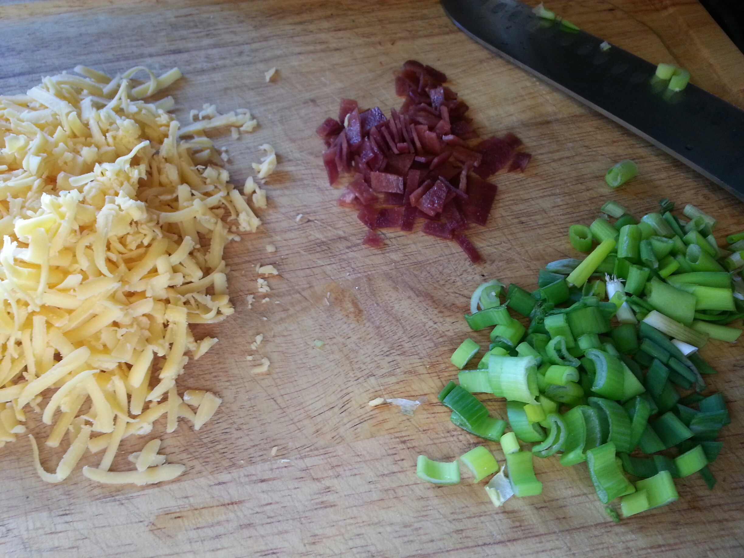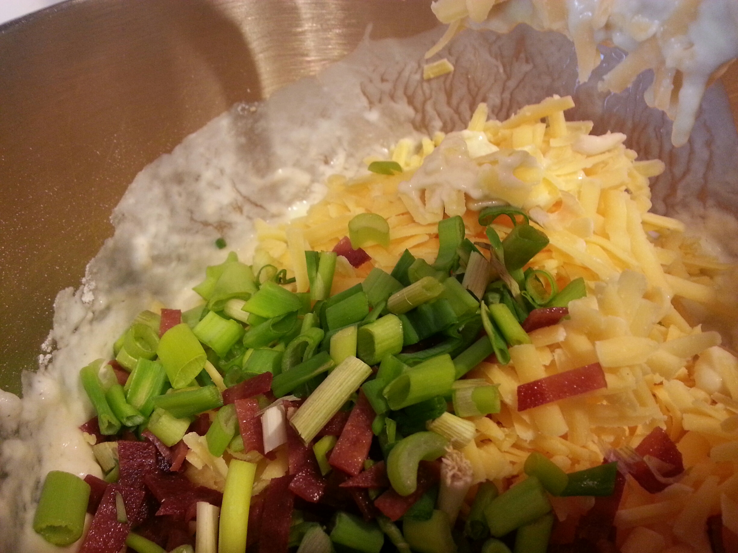 I was after a hearty breakfast Saturday morning and really wanted waffles. But not your ordinary waffles. I wanted different waffles. Spectacular waffles! Out of this world waffles! And so it came to pass, I made waffles. Really, really good waffles filled with bacon and Applewood Smoked Cheddar.