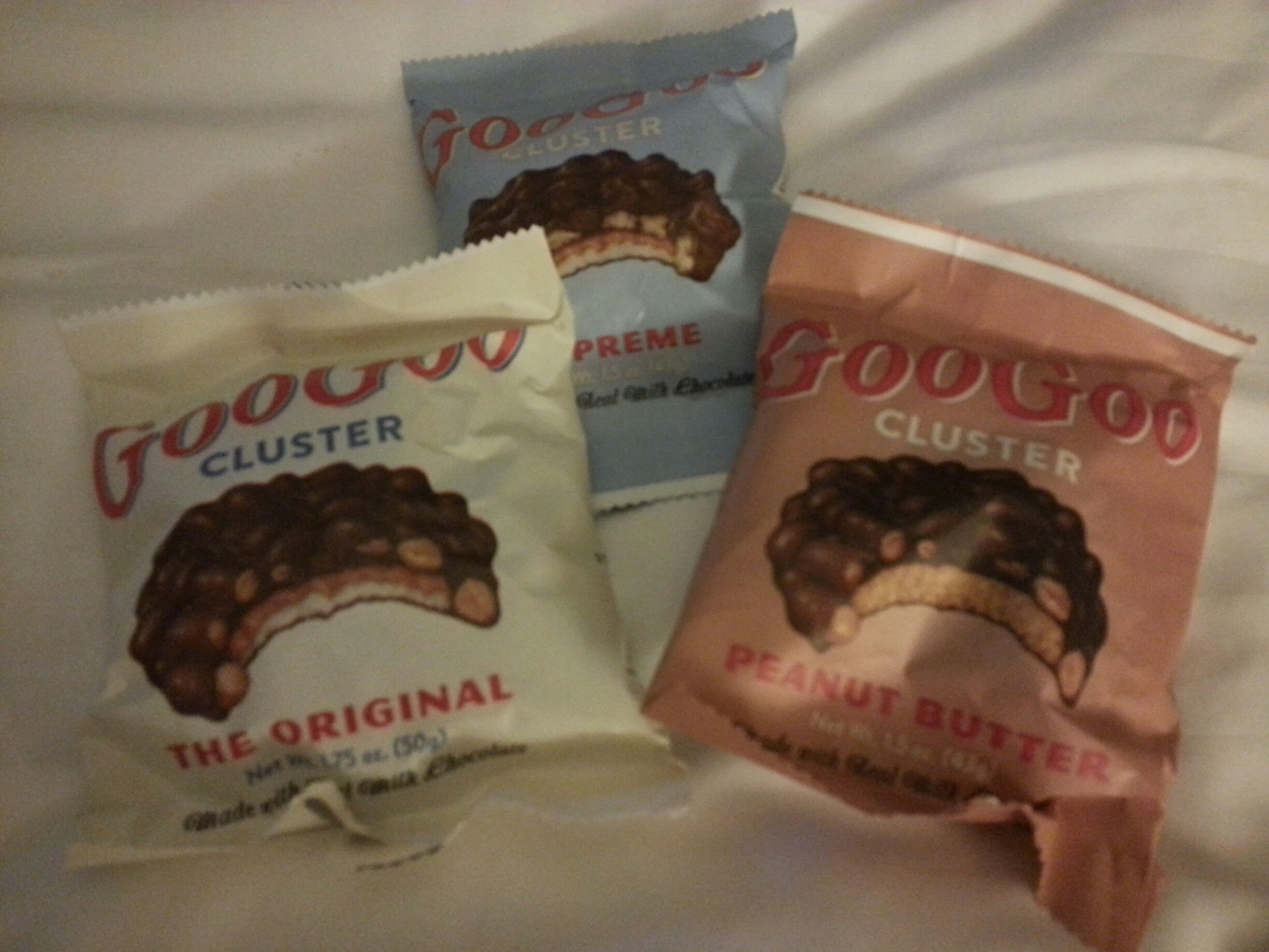 Sample Goo-Goo Clusters. Even in PEANUT BUTTER! Are you even kidding me??? I reckon this is my version of mama’s Snickers. LOL!