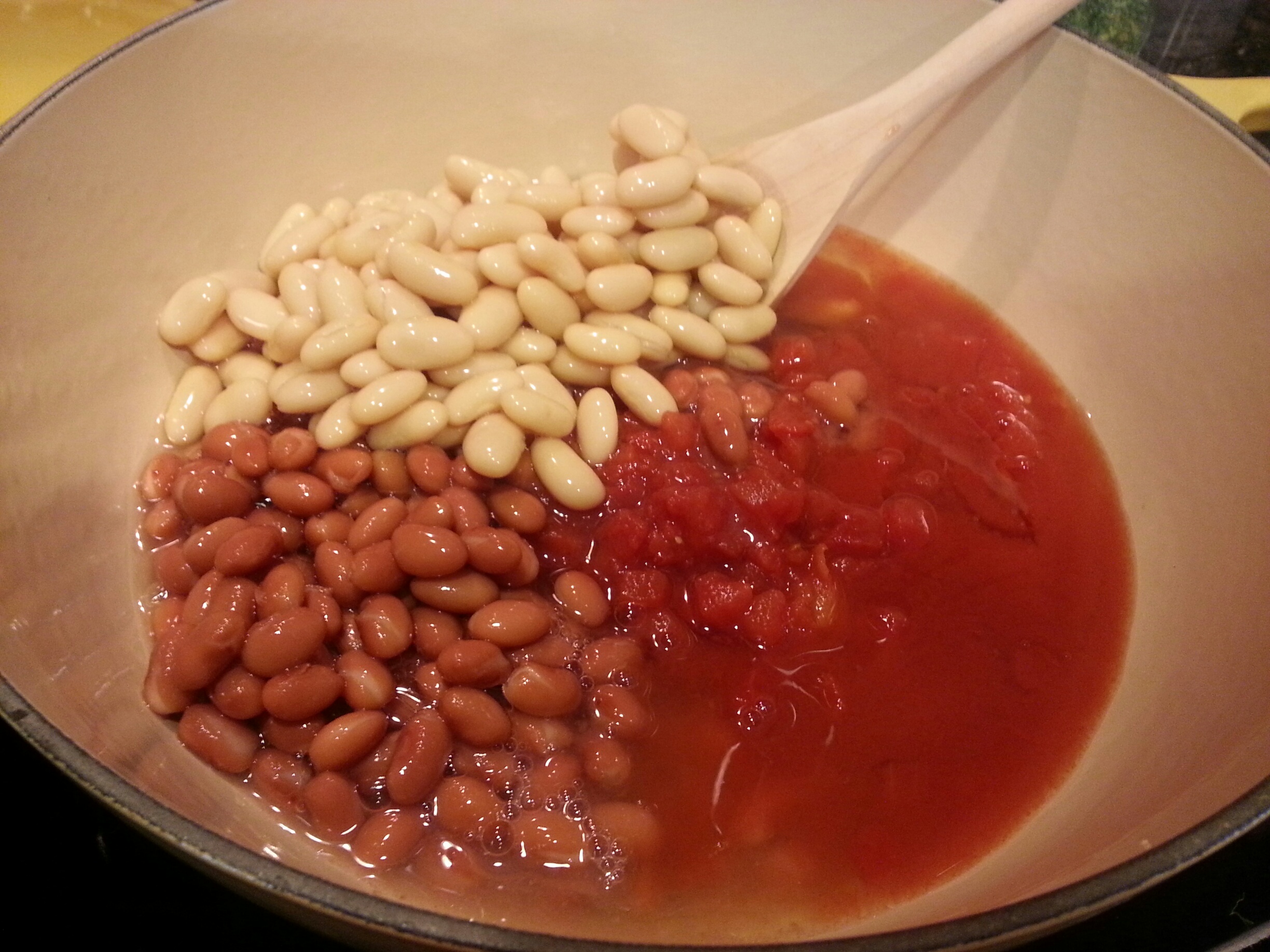 - 2 cans beans; I used pink and white, but any will do including black or pork n beans