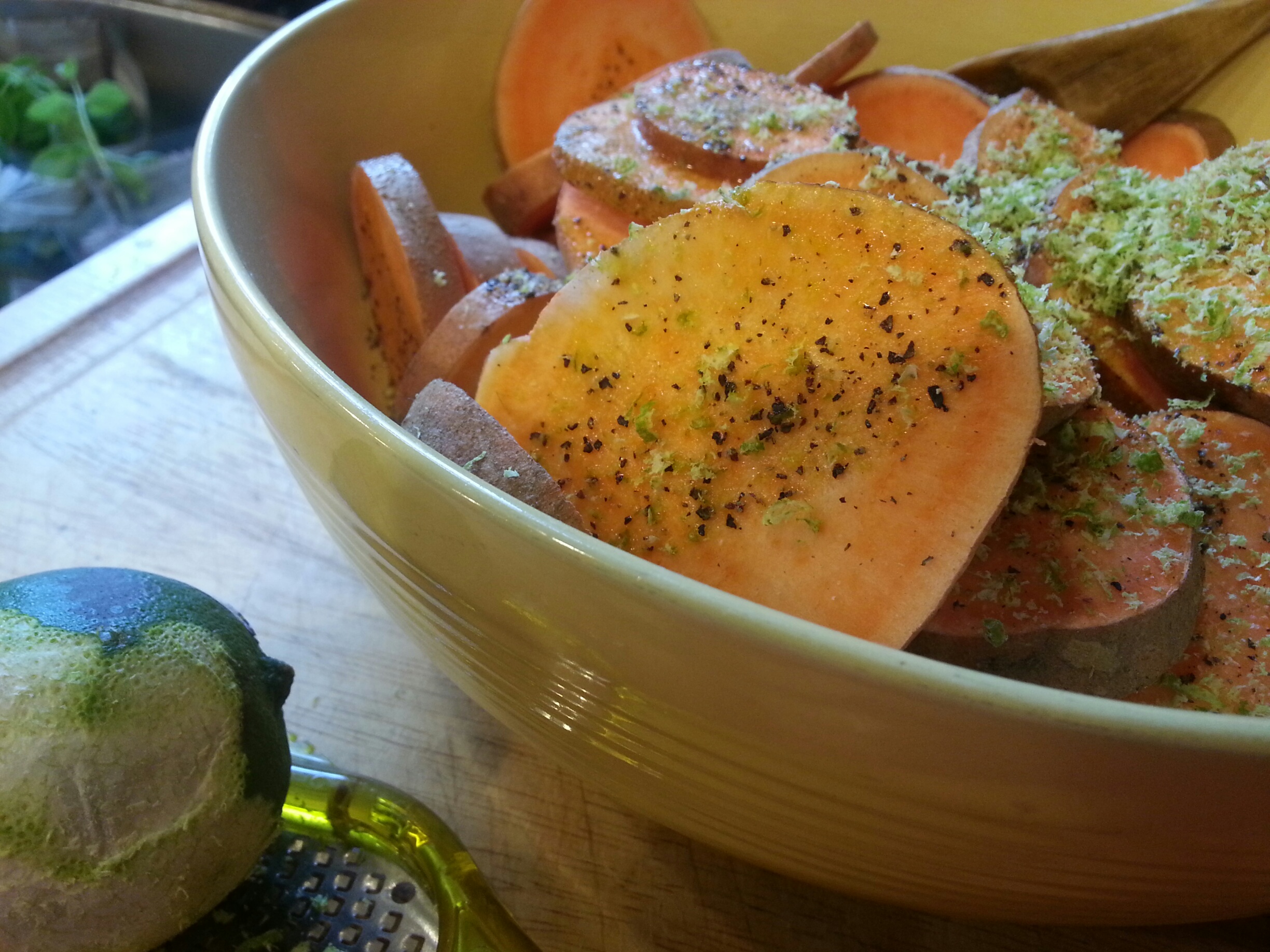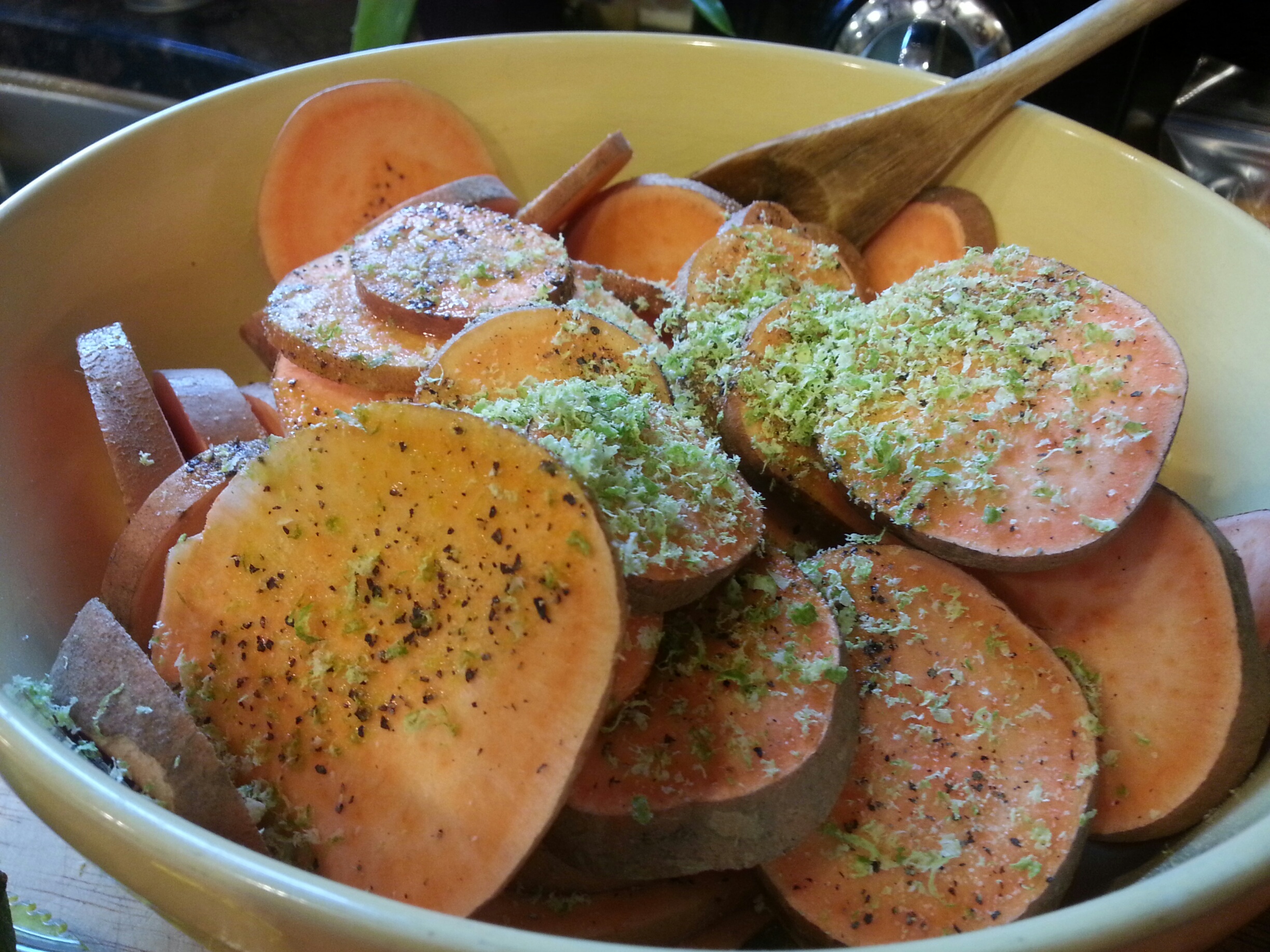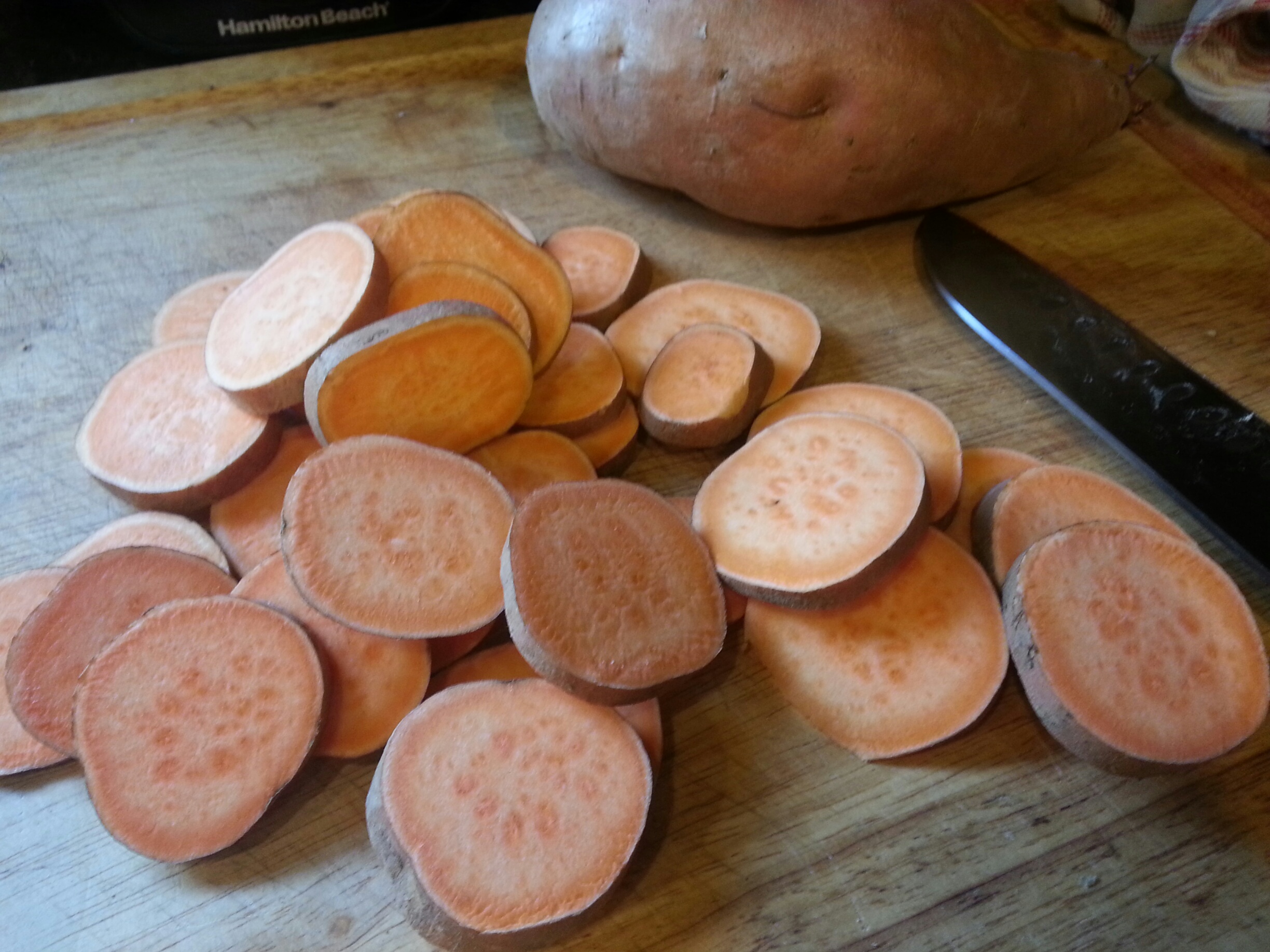 - 4 sweet potatoes, washed, peeled and cut into medium thick slices