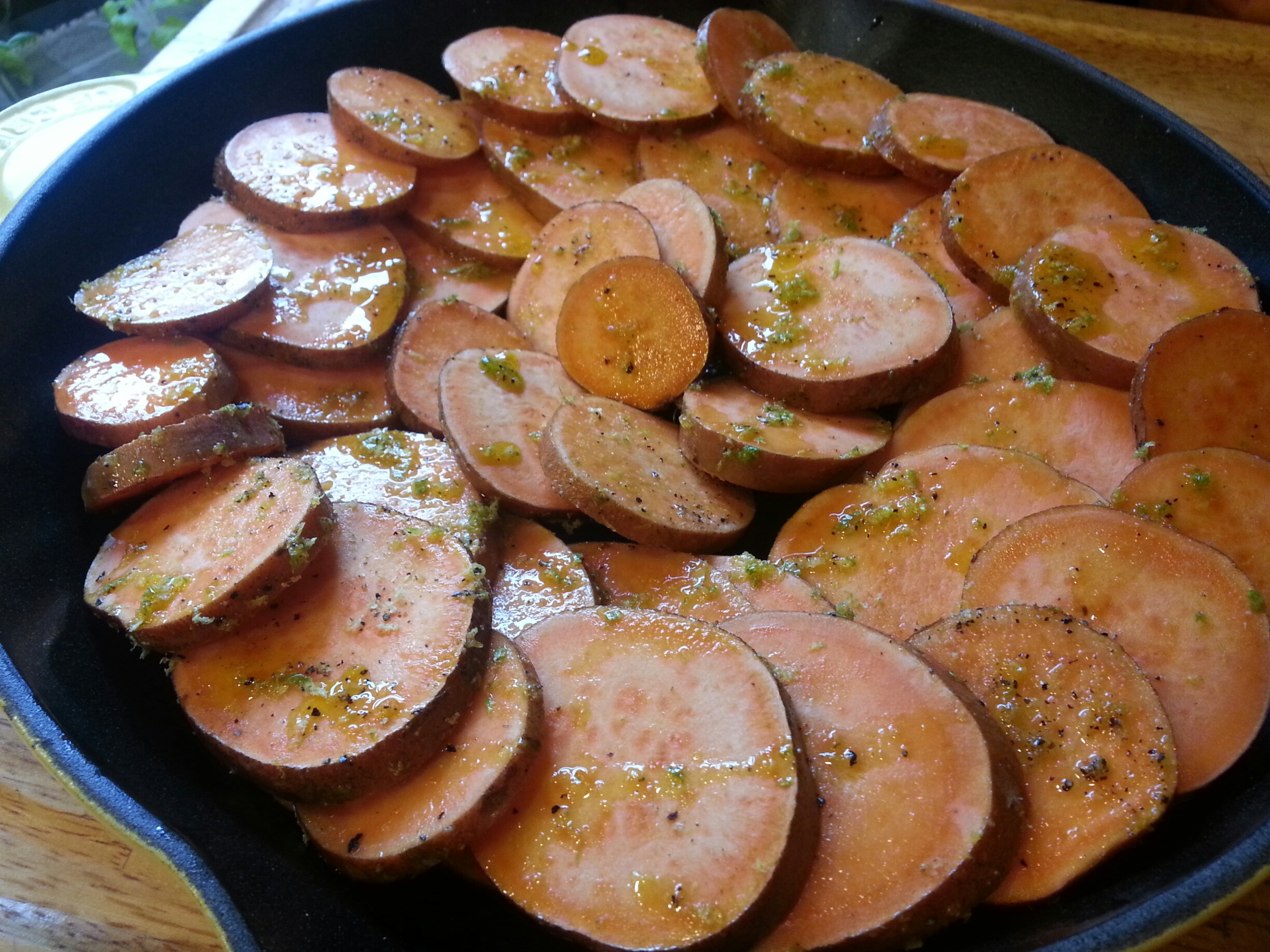 baked sweet potatoes, cast iron recipes, cooking with cast iron, recipes for the skillet, Skillet recipes, Sweet potato recipes