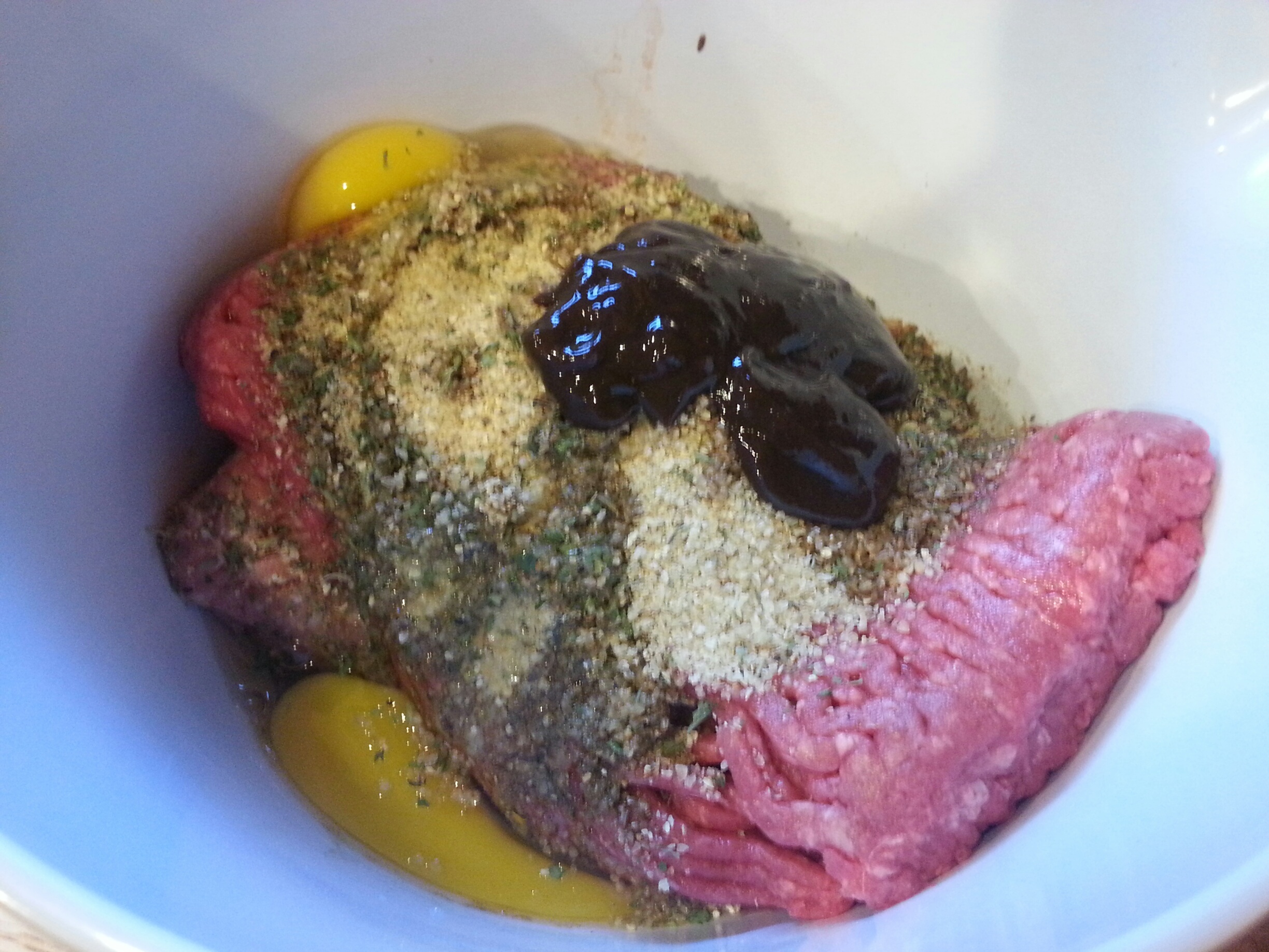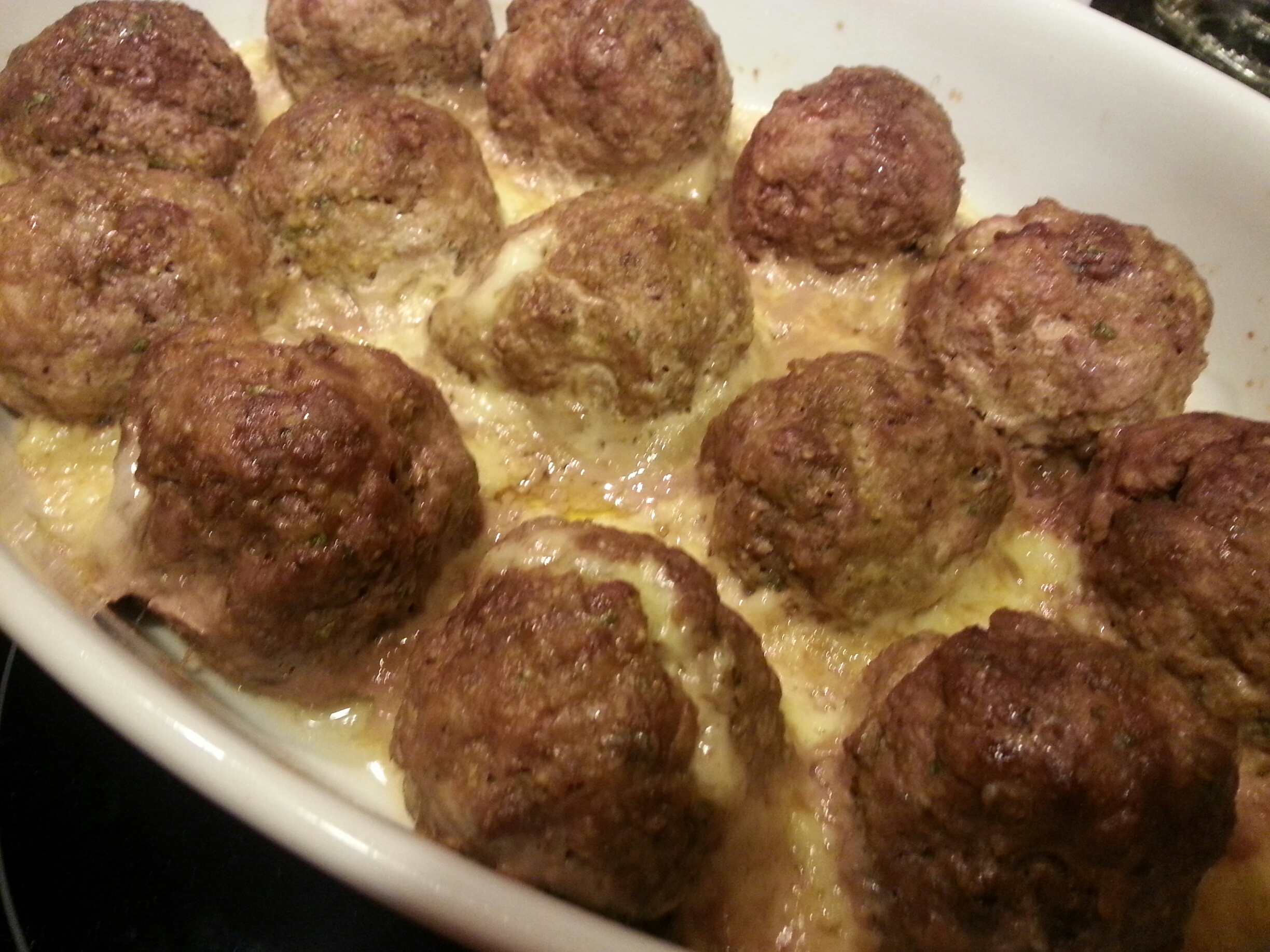 Place remaining two eggs in bowl and whisk lightly. Place flour on one plate and Panko on another. Using a cookie dough scoop (or your hands), divide and roll mixture into meatballs. Roll each meatball in flour, dip in egg, coat well with Panko and place on a greased baking pan. Do this with each meatball. When finished, bake the meatballs at 325 for about 20 minutes or until no longer pink.