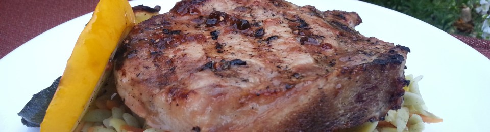Raspberry Chipotle Pork Chops with Grilled & Dilled Patty Pan Squash