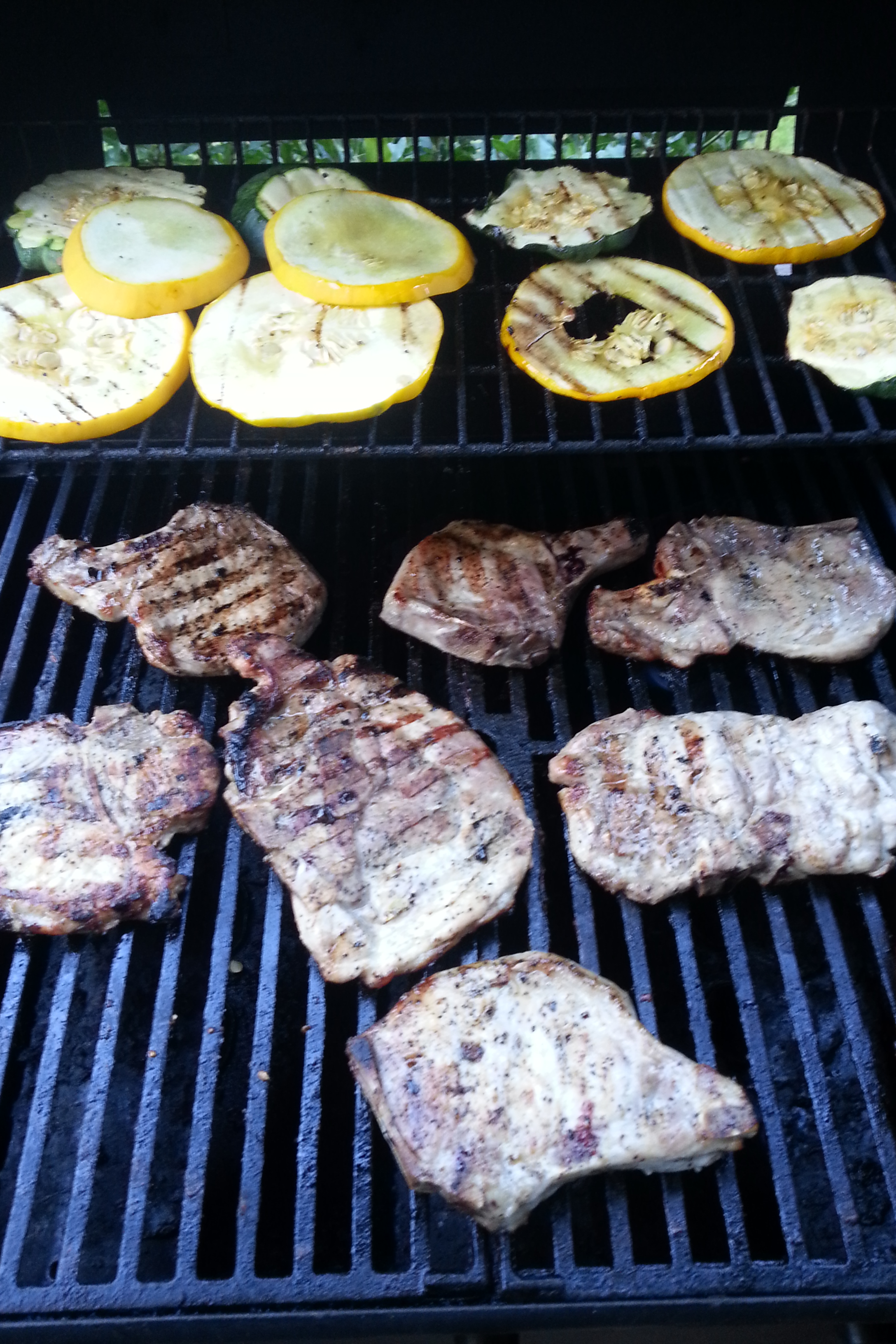 grilled pork chops, grilled squash, grilled vegetables, grilling recipes, patty pan squash recipes, pork chops, raspberry chipotle sauce, summer grilling, Tailgaiting