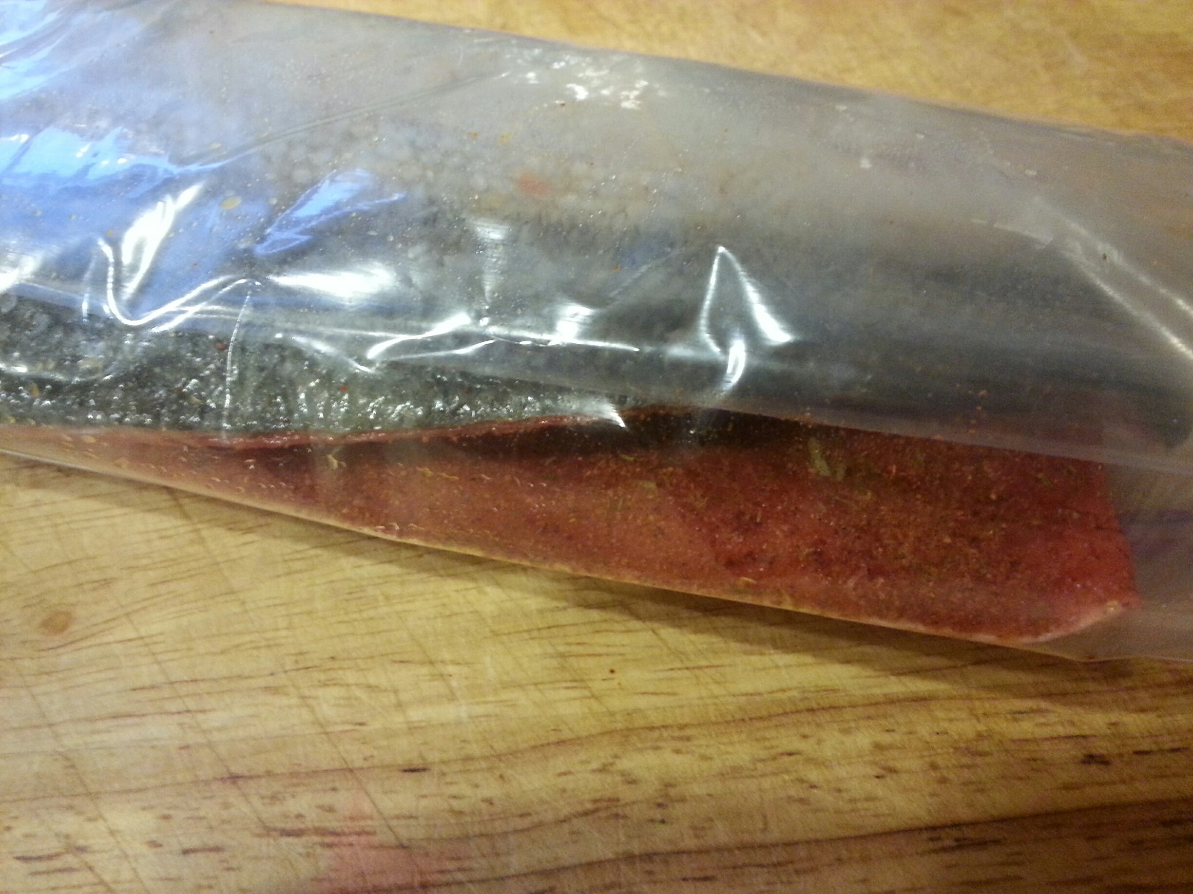 In a mixing bowl, whisk mustard, preserves, brown sugar, bourbon, salt and pepper. Place mixture into a ziplock bag with the salmon and allow to marinate 3-4 hours minimum or overnight.