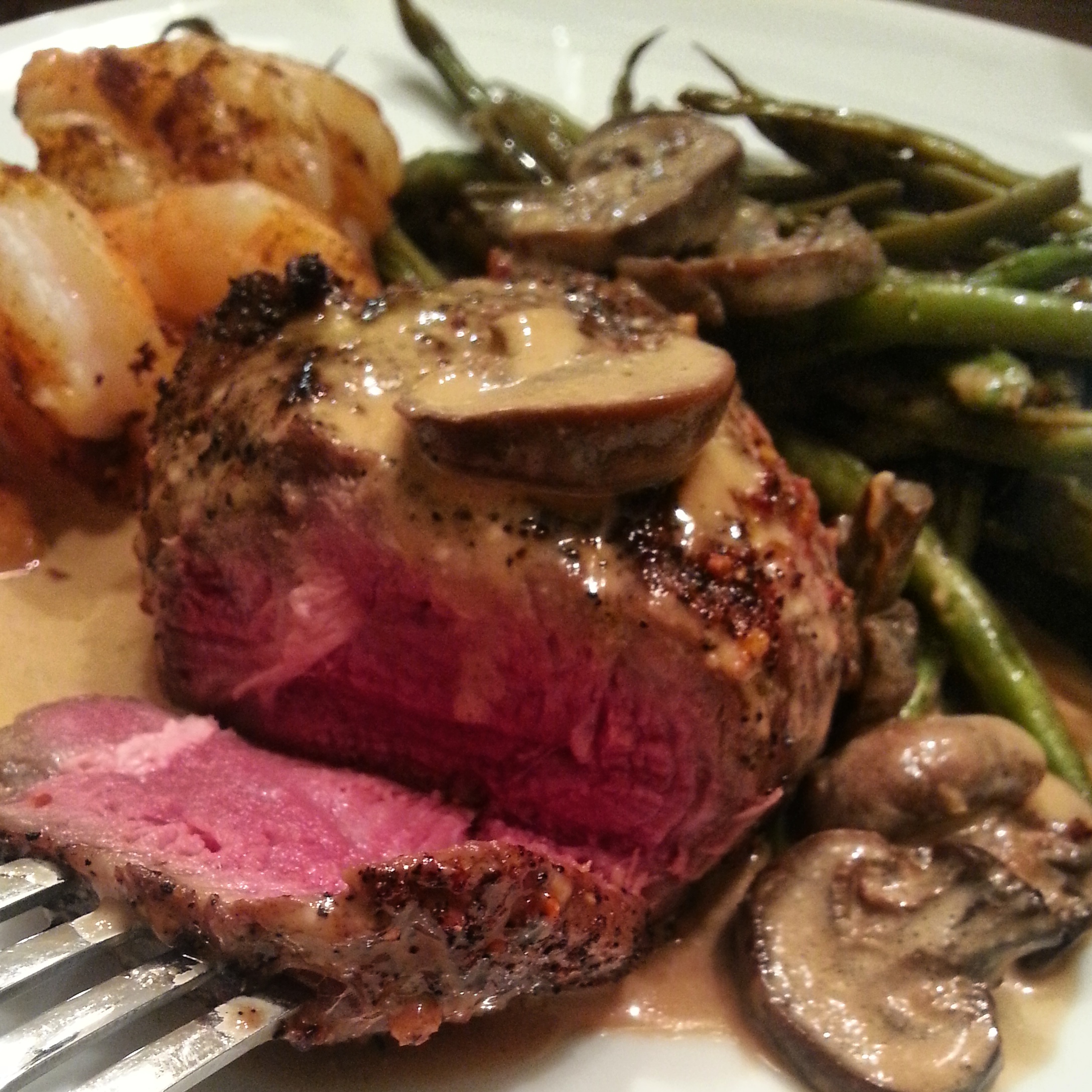 Espresso Rubbed Filet Mignon with Bleu Cheese Mushroom Gravy