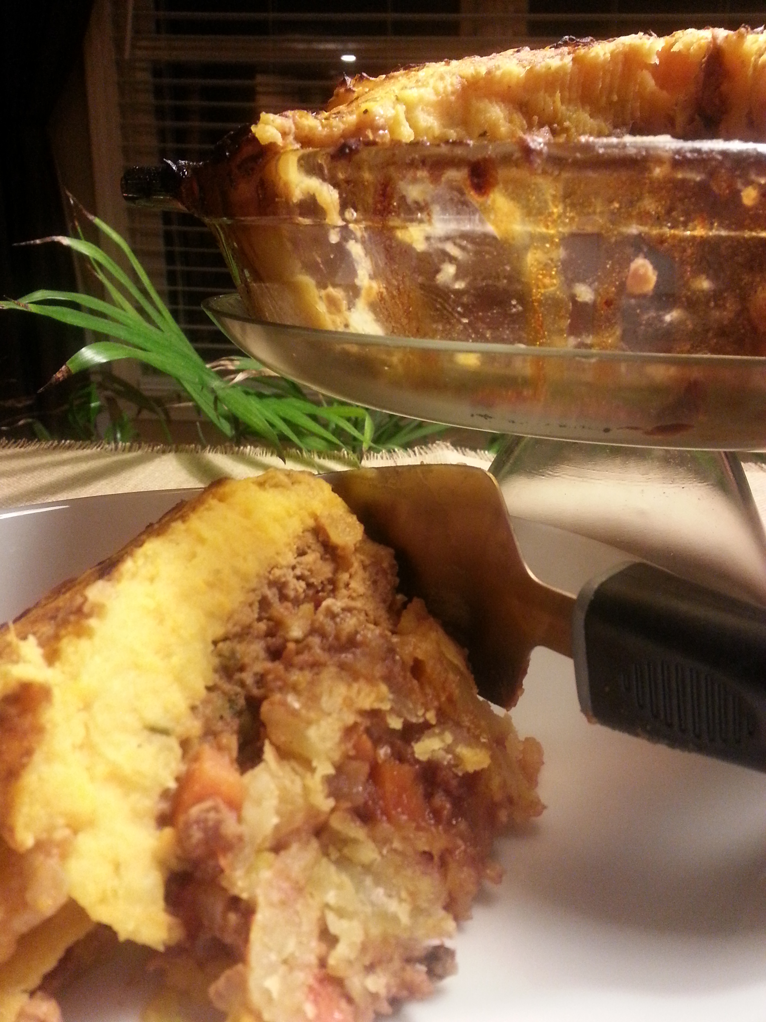 Note: I learned today this is Cottage Pie, not Shepherd’s Pie. The difference being true Shepherd’s Pies are made with Lamb or Mutton 🙂 Thanks Mr. Fitz! 🙂