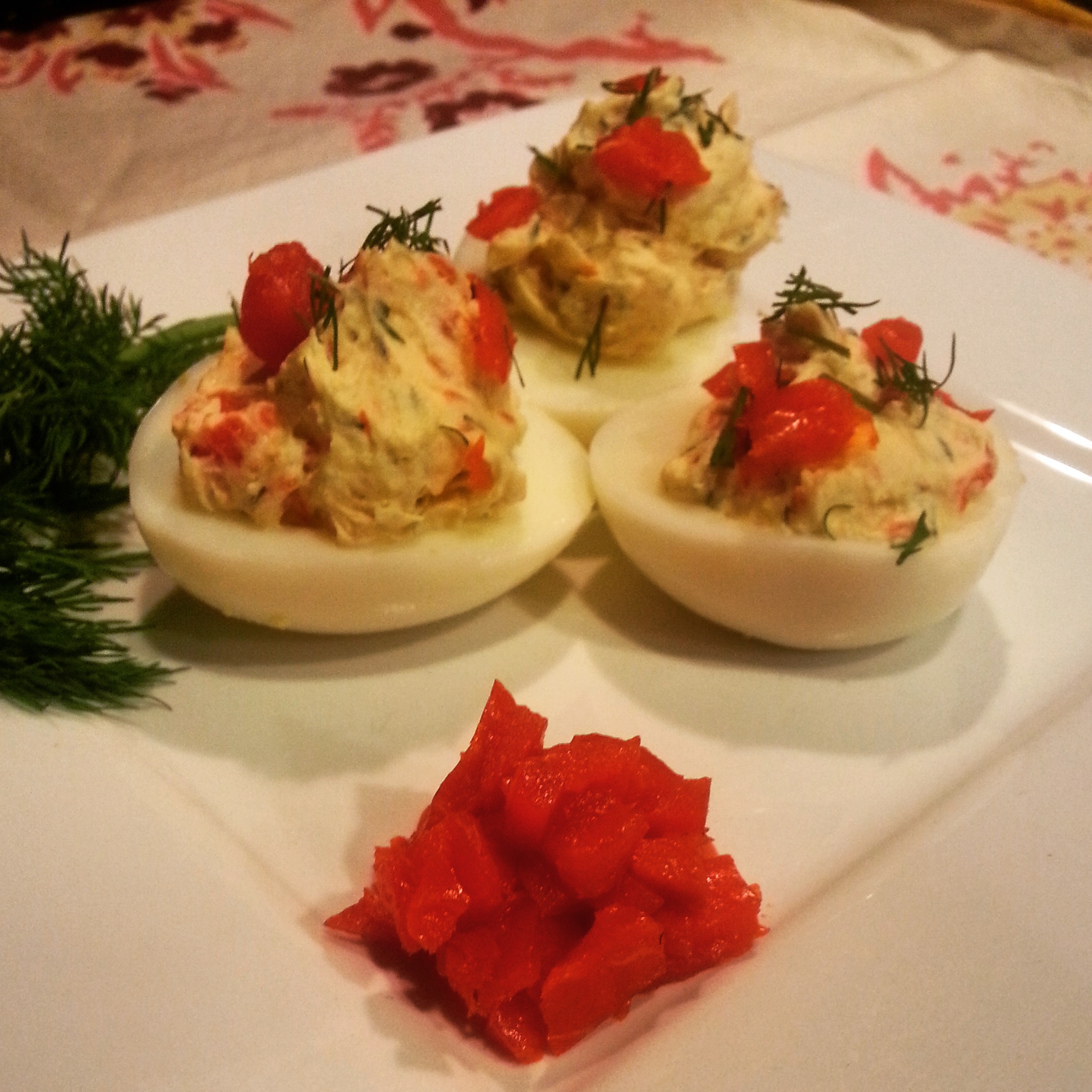 - 12 boiled eggs; shelled, halved