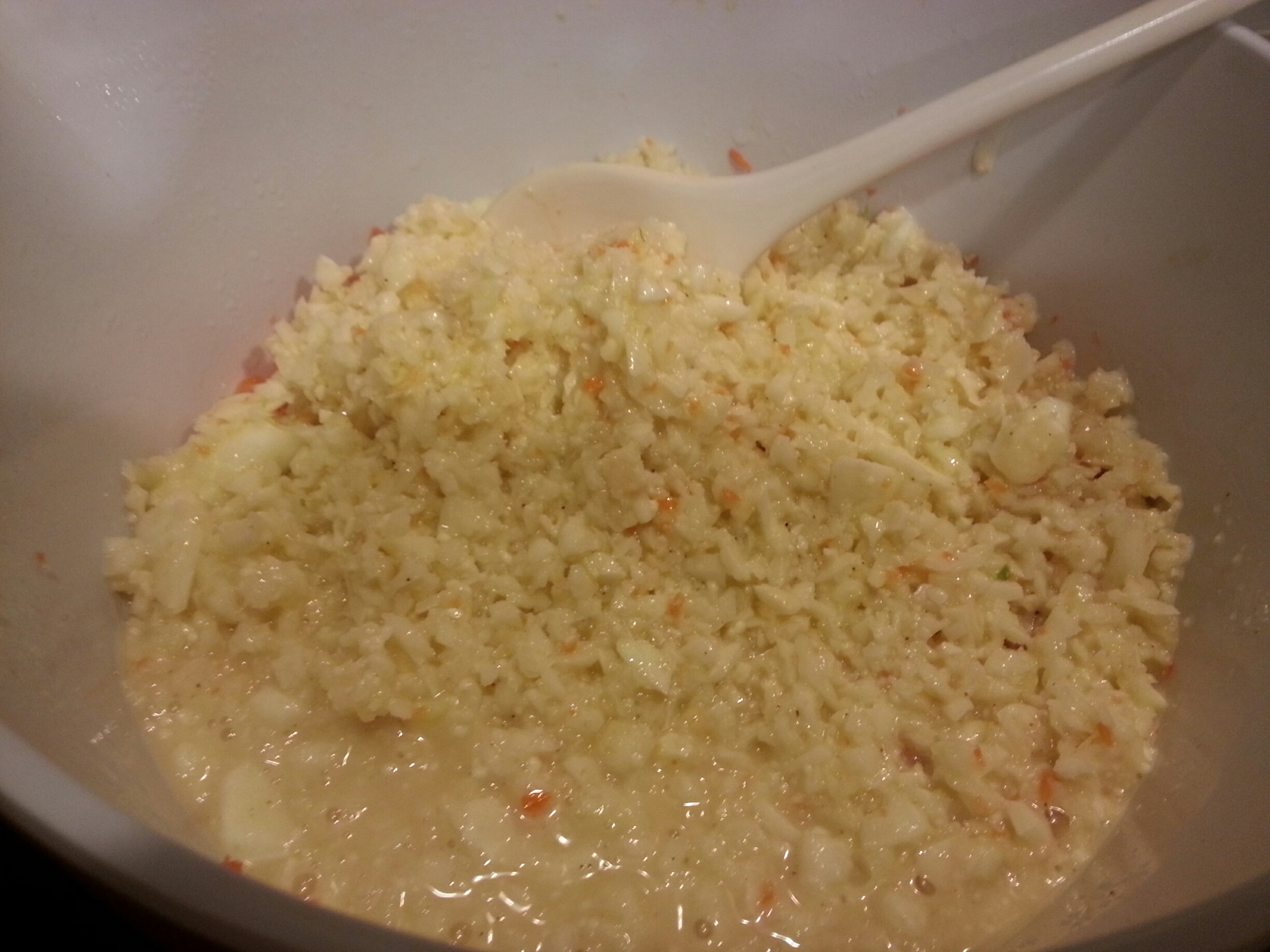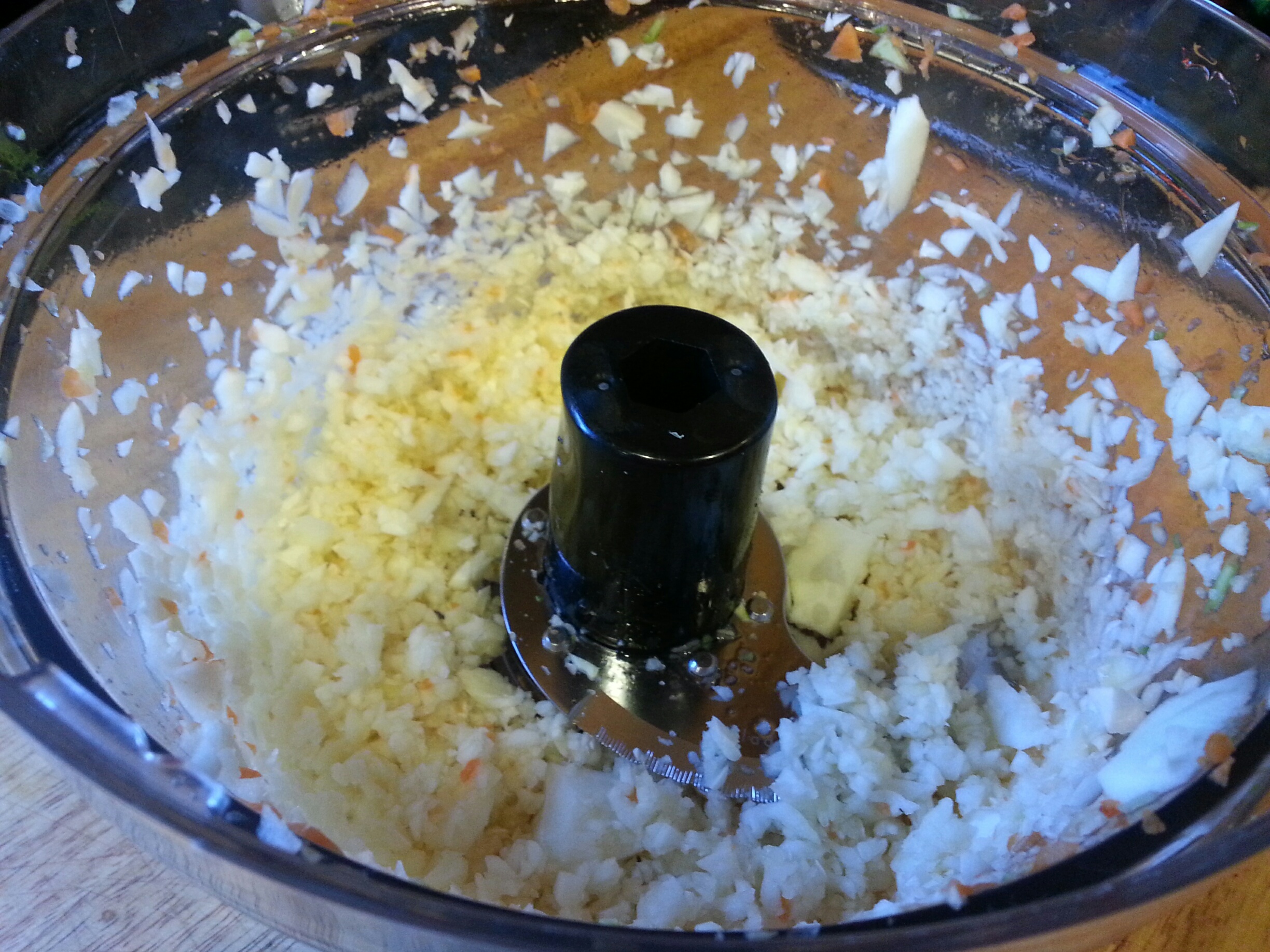 - 1/2 head cauliflower, roasted then chopped in a food processor until crumbly