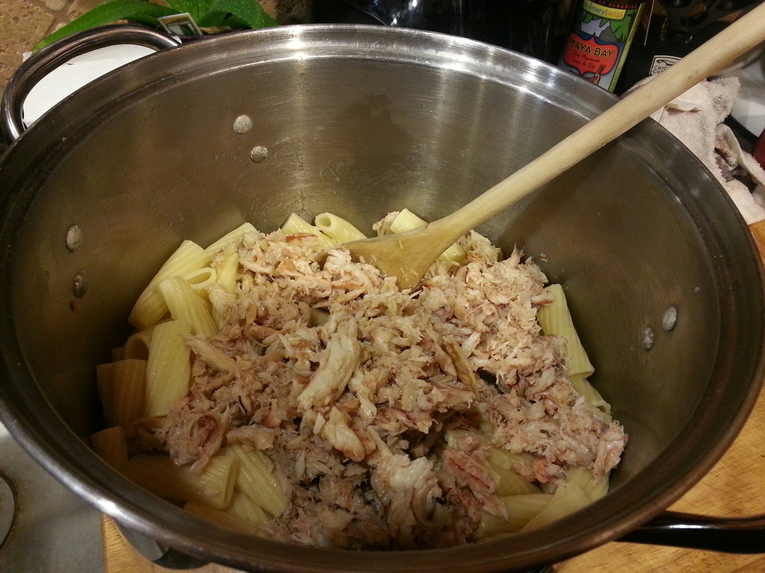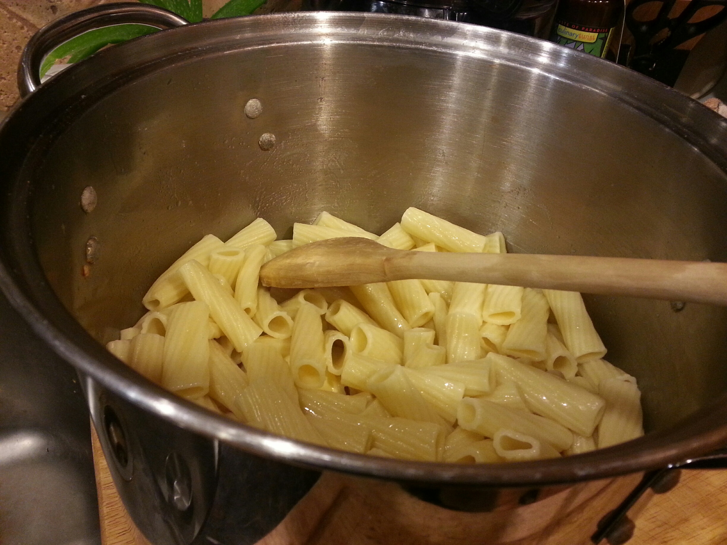 - 1½ cups of penne, cooked and drained (reserve 1/2 cup pasta water)