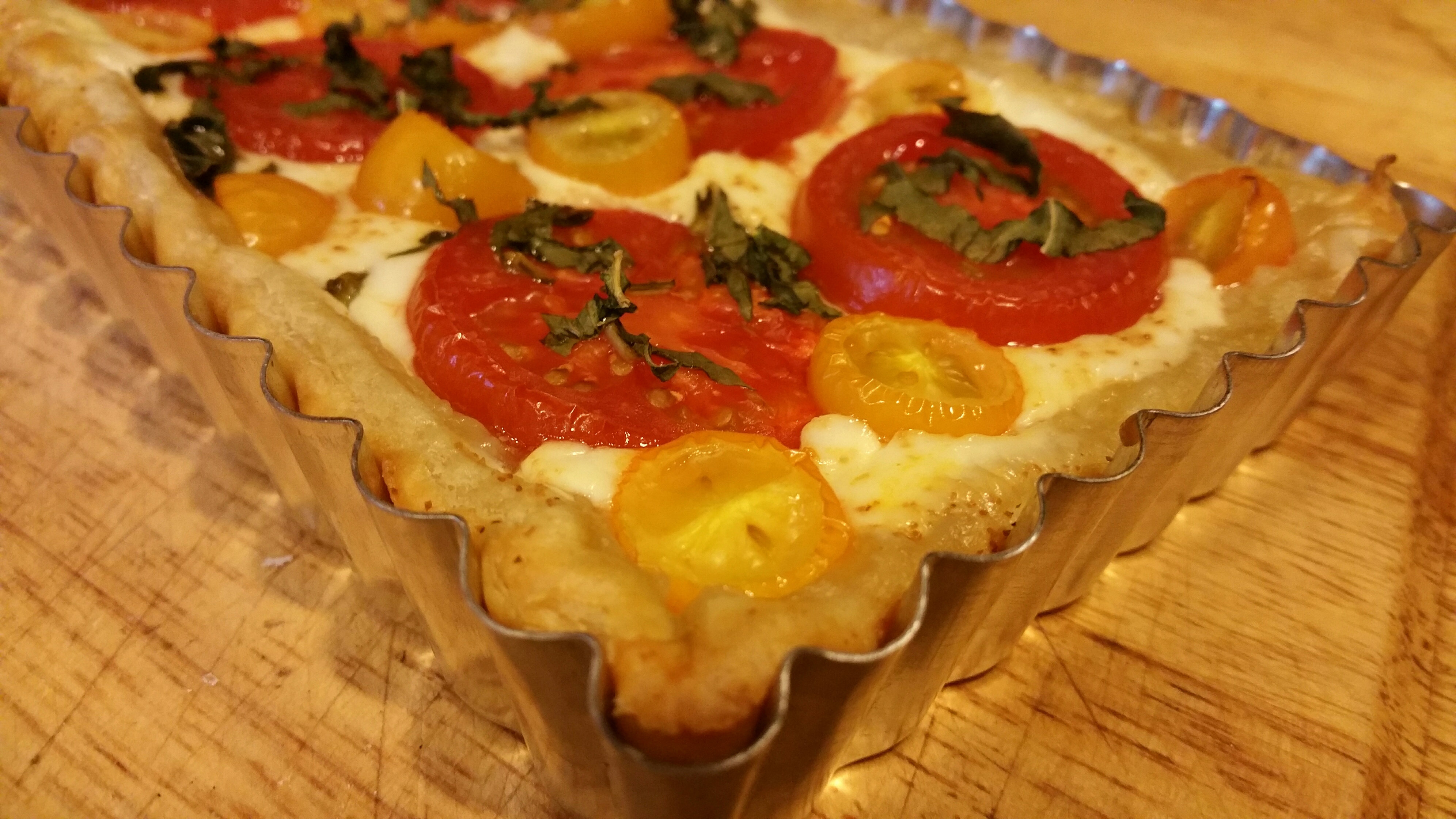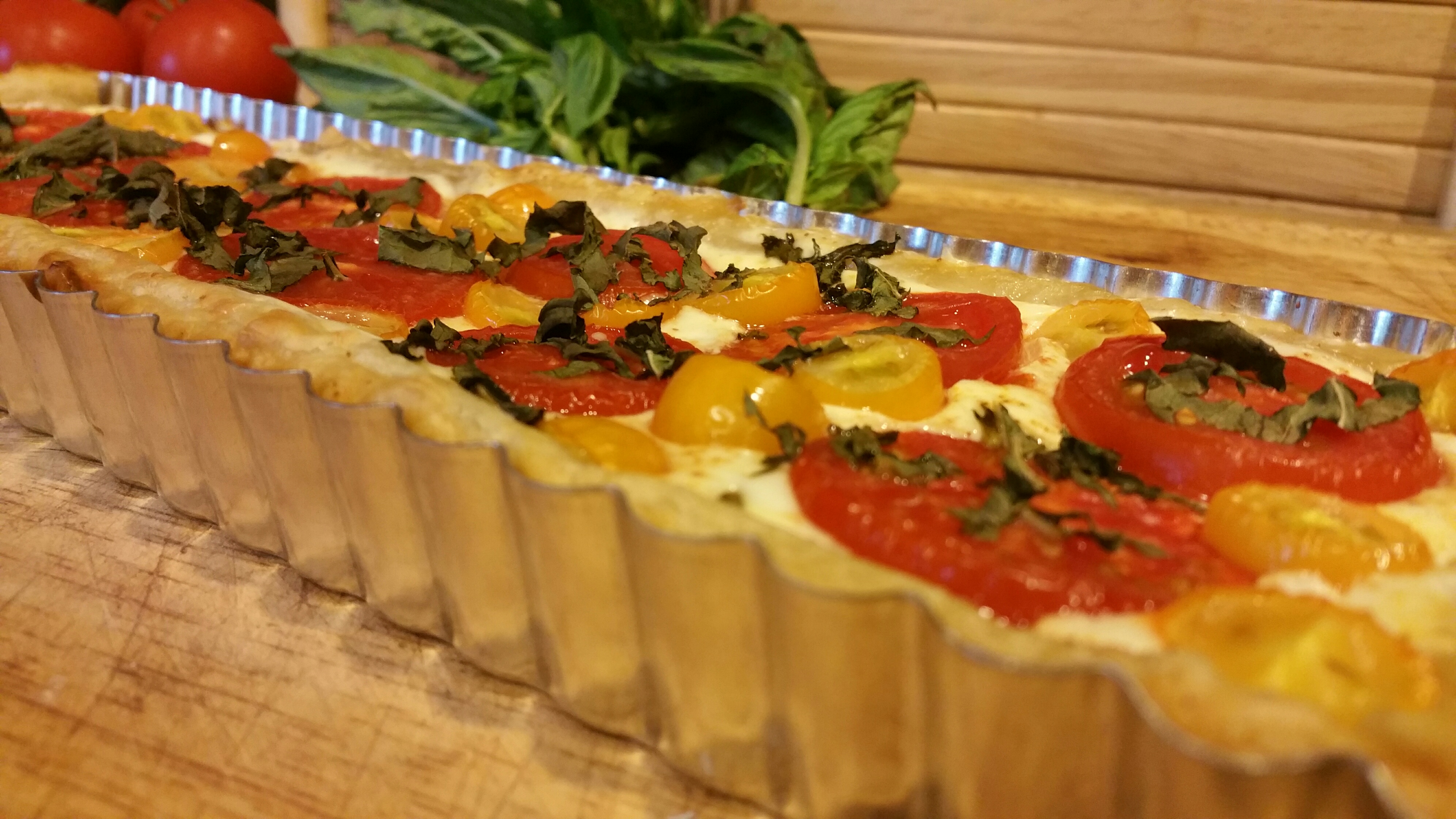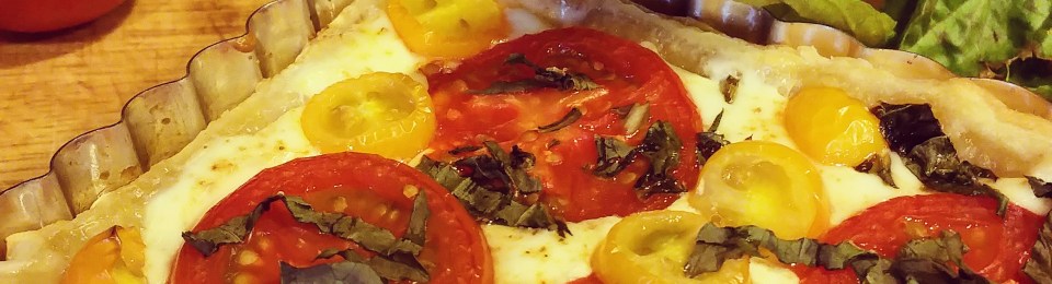Roll out pastry dough, rolling 1/2 tsp. Saffron in to dough. Fit dough in a greased tart pan or pie dish. Fill with Ricotta. Top with remaining Saffron. Cover with sliced tomatoes, then with garlic and Basil. Bake at 400 degrees for about 30 – 40 minutes or until top has begun to brown.