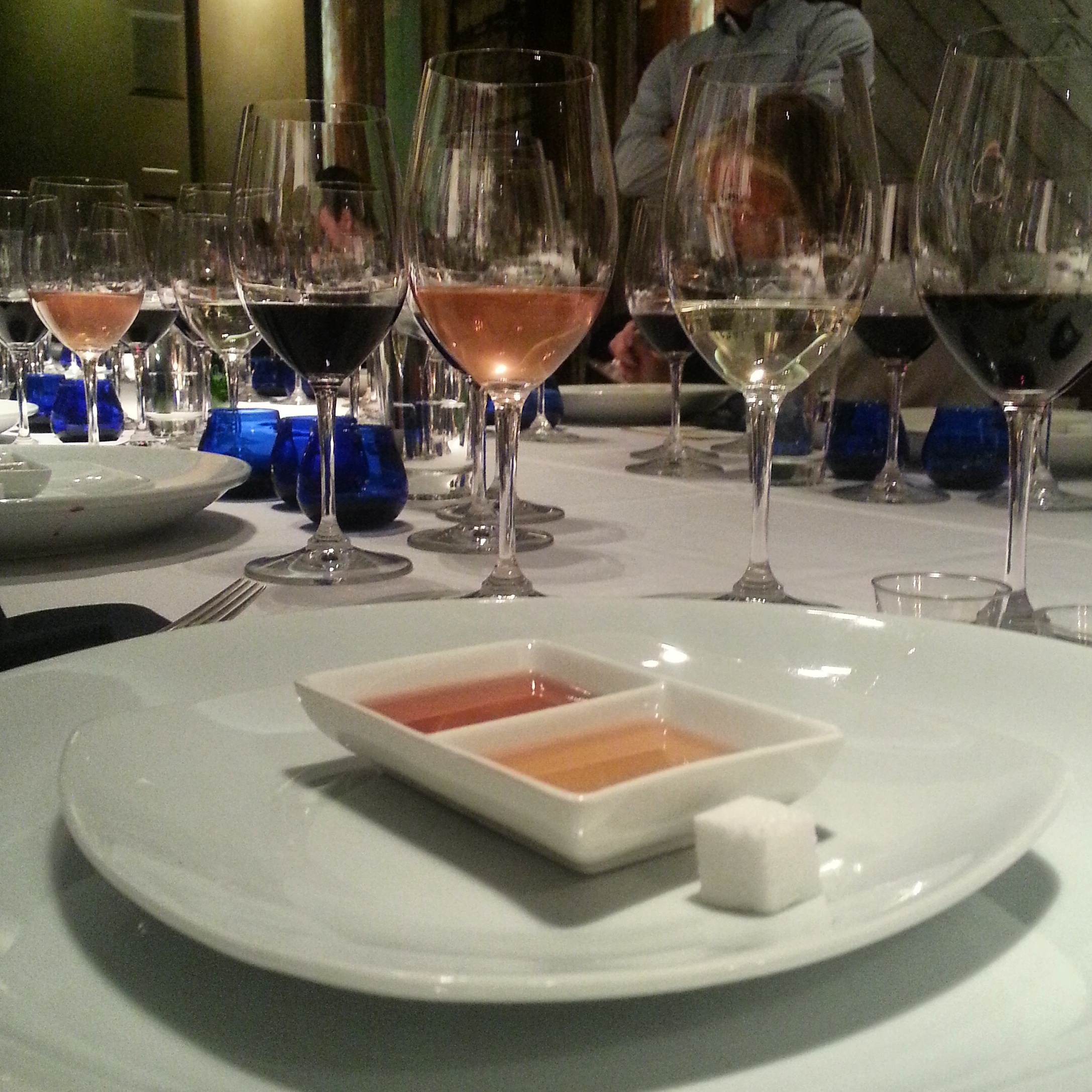 We tasted the two vinegars by dipping sugar cubes into the vinegar. While they were both rich in character, my pick was the Sangiovese-Nebbiolo-Petit Verdot blend which to me had a smoother finish.