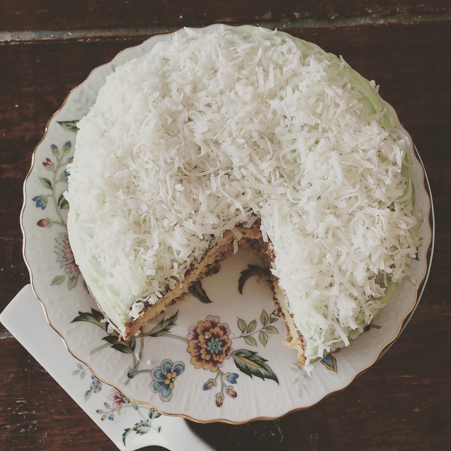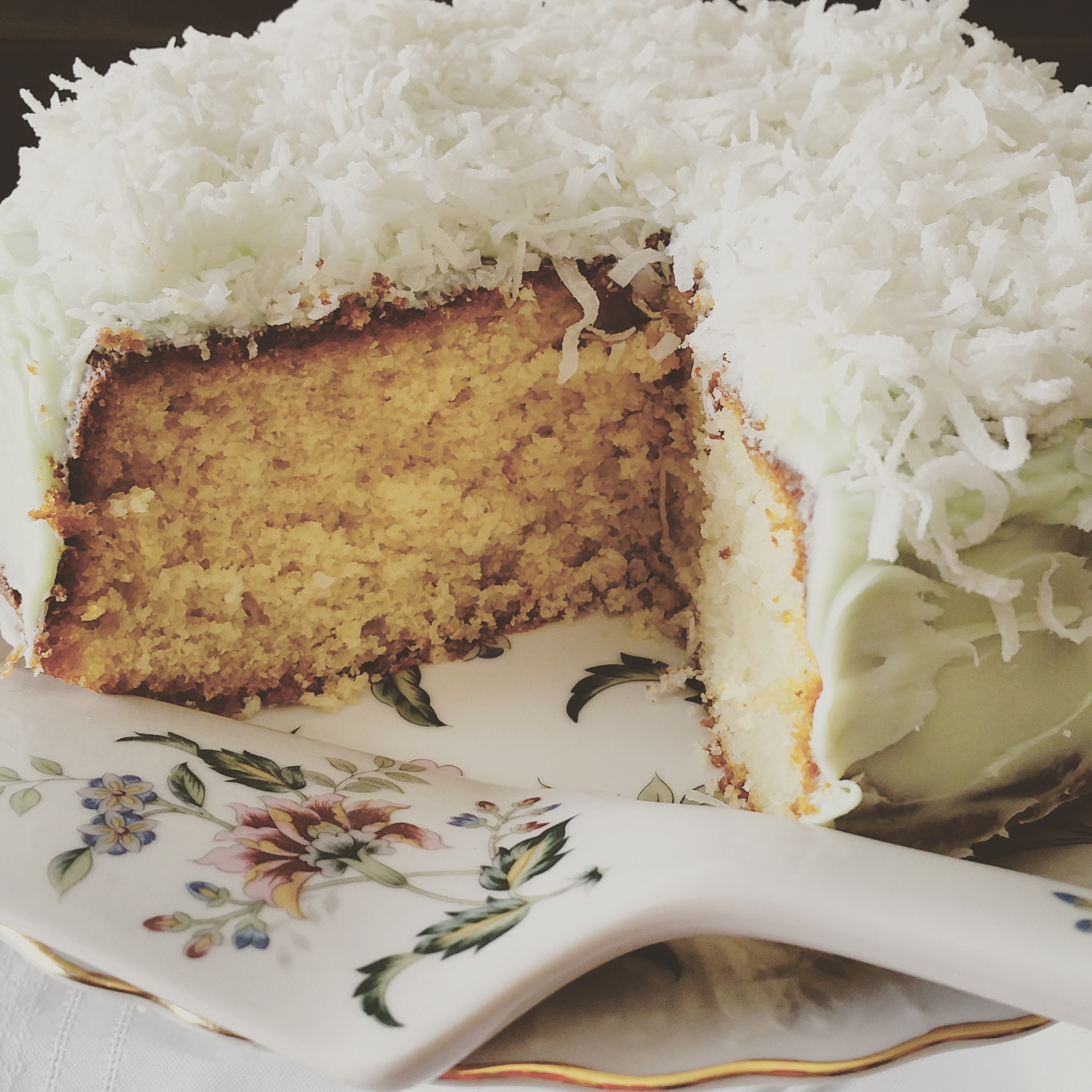 Coconut Cake with Cream Cheese Key Lime Curd Frosting