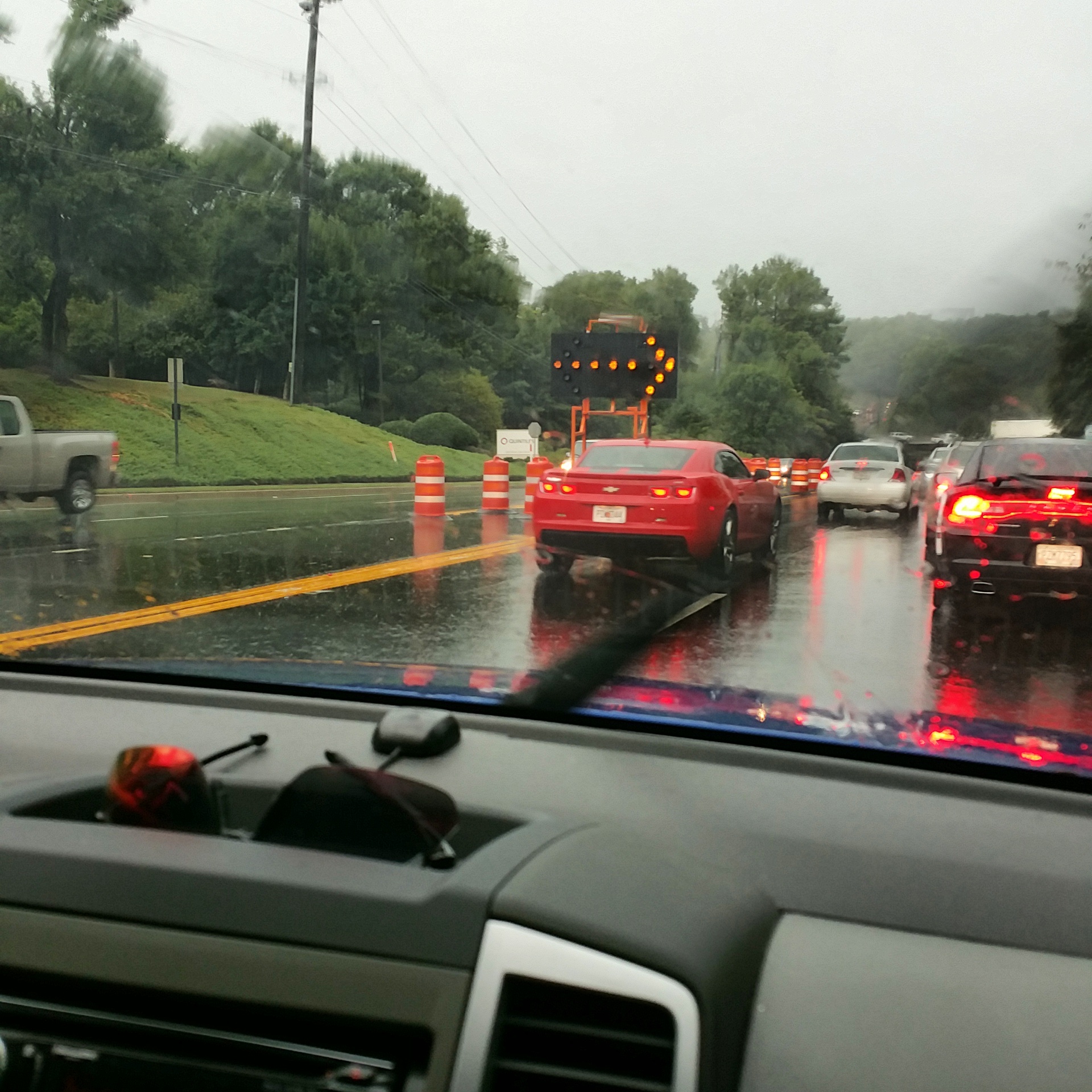 - An arrow pointing four lanes of traffic into one lane. (WEAVE PEOPLE! We CANNOT ALL fit at once!)