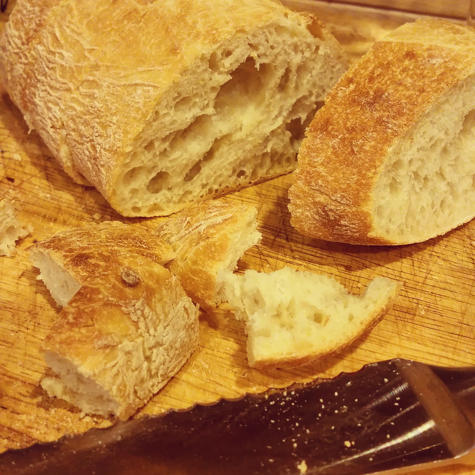 Place bread on a baking sheet and drizzle with olive oil. Place in the oven and bake at 425 for about 15 minutes or until golden & toasted.