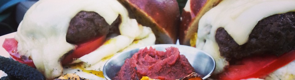 Beef Sliders with Garlic Aioli, Fried Egg and Pretzel Buns