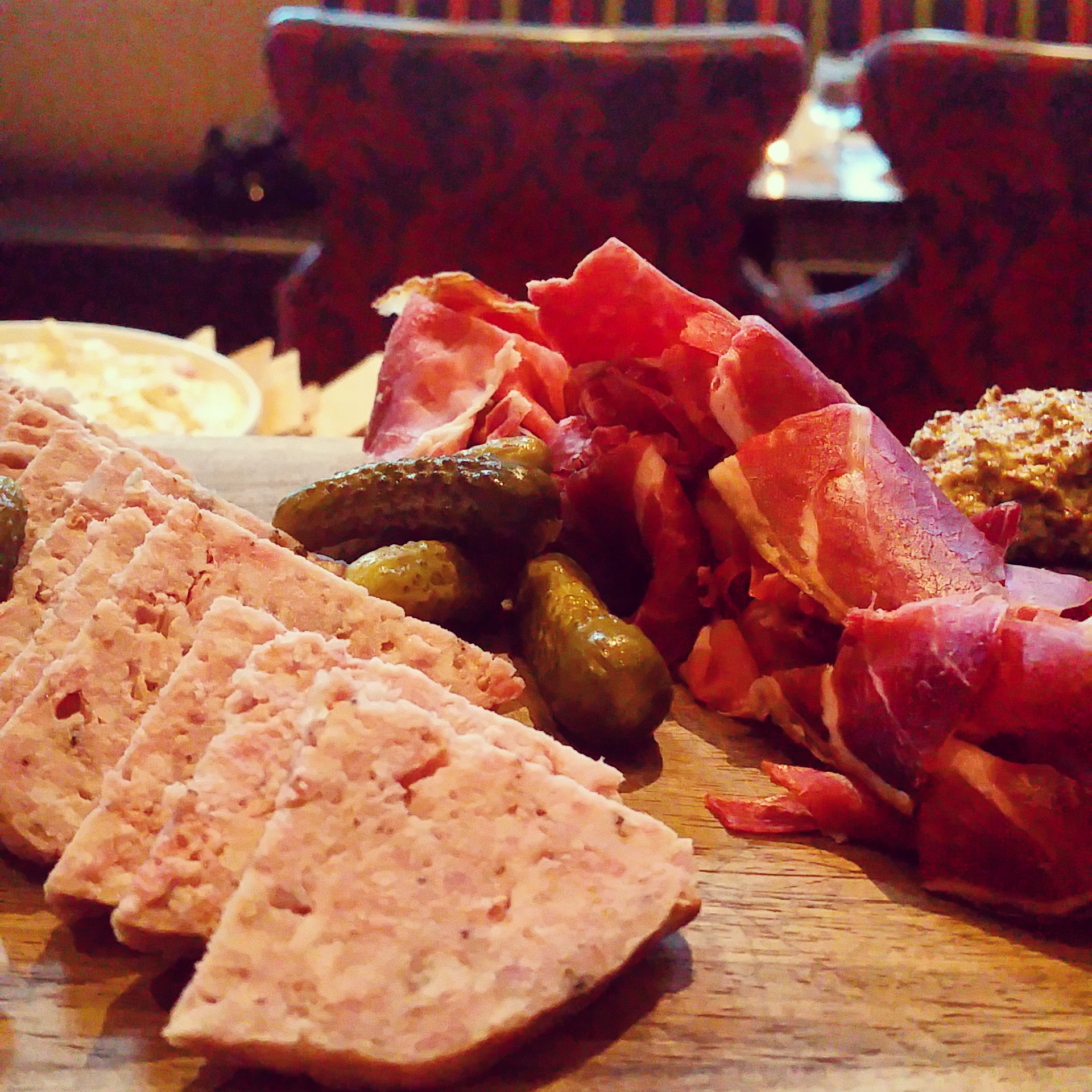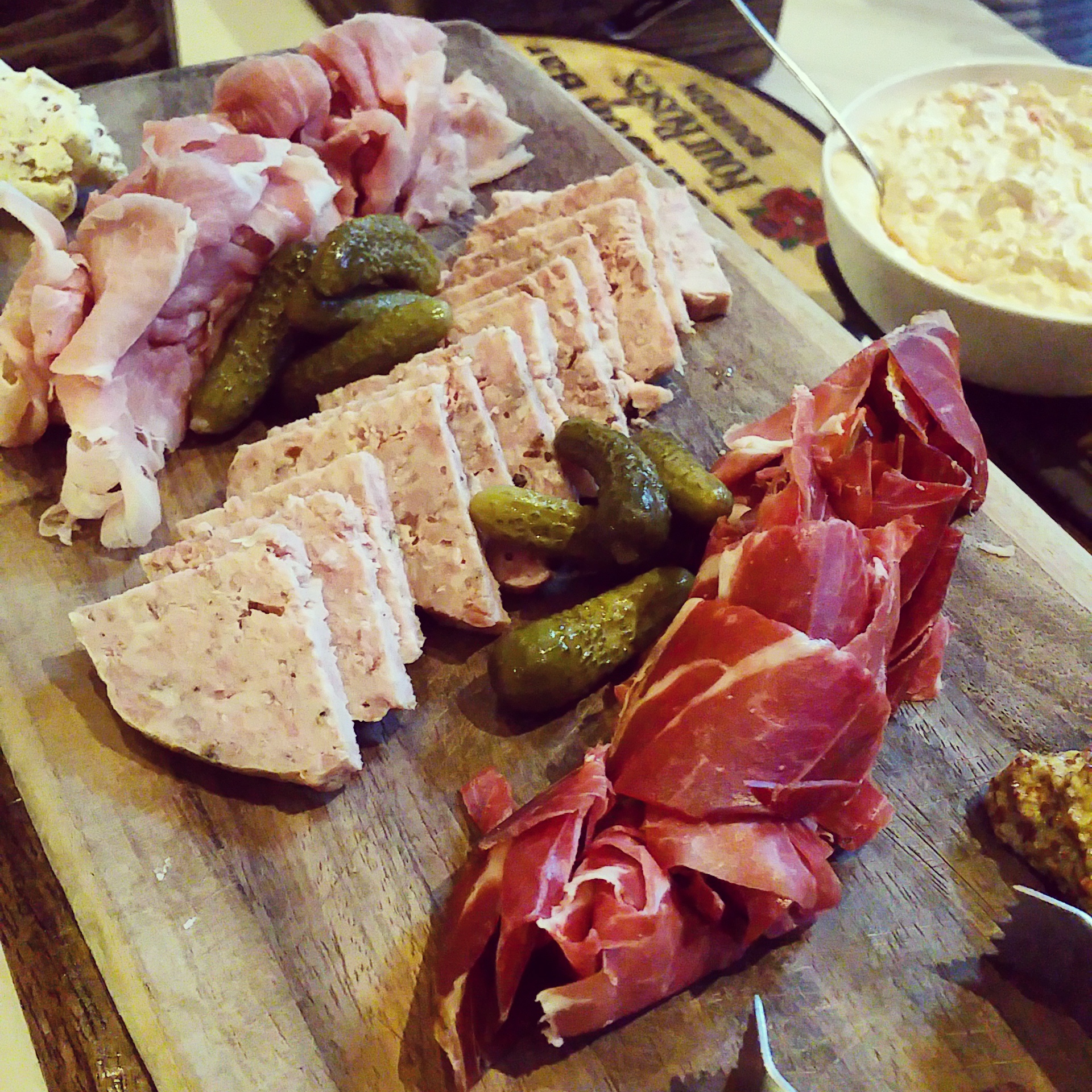 Southern Art makes fabulous pimento cheese, served with homemade saltines that pair beautifully with the charcuterie on the Butcher’s Board. Their hams are bar none with more than a generous amount of in-house cured offerings.