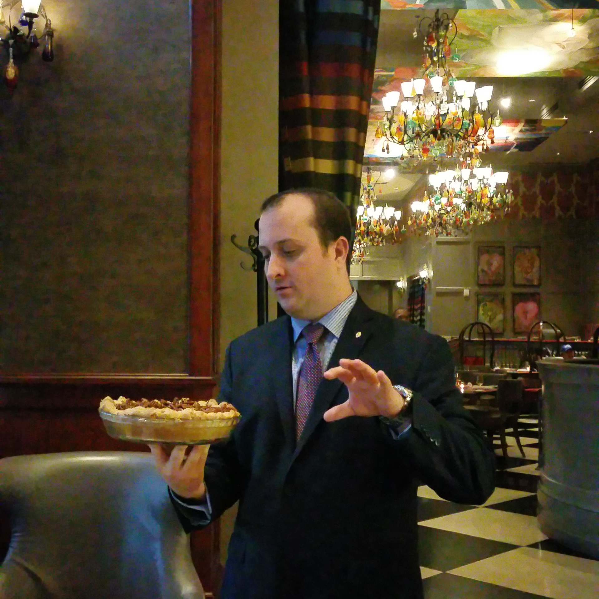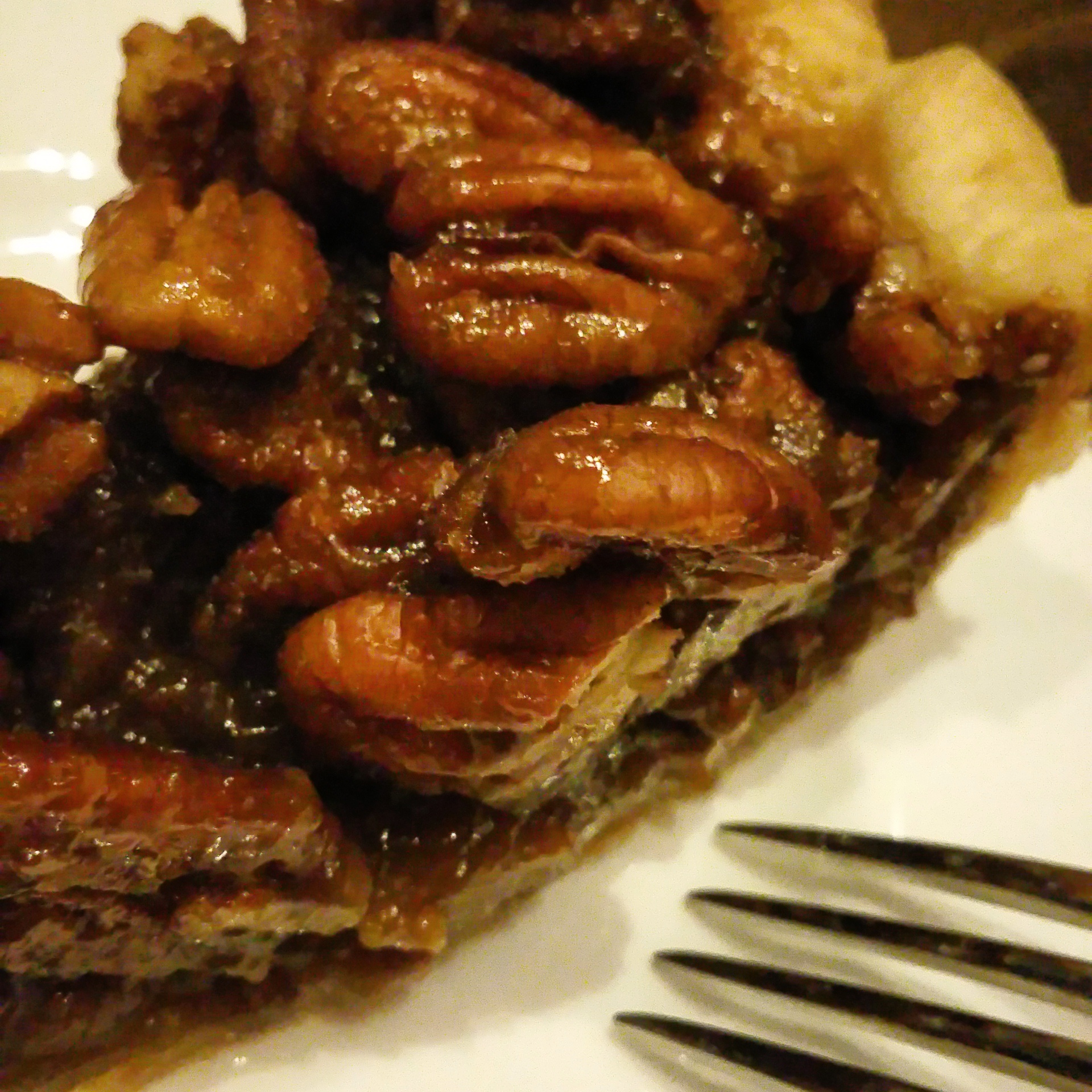 Then came dessert; a sinfully decadent Bourbon Chocolate Pecan Pie with thin flaky crust filled with pecans, white chocolate and whipped cream. Of course. What a heavenly pairing. What could have possibly been more appropriate?