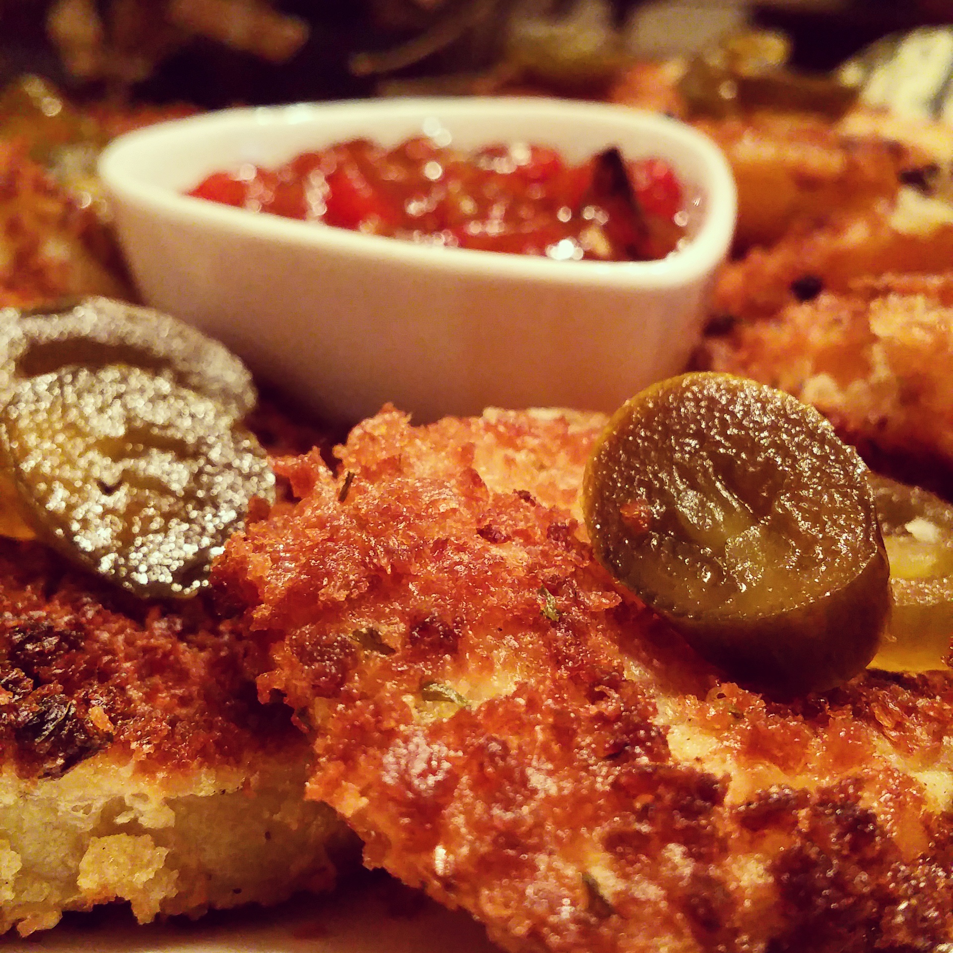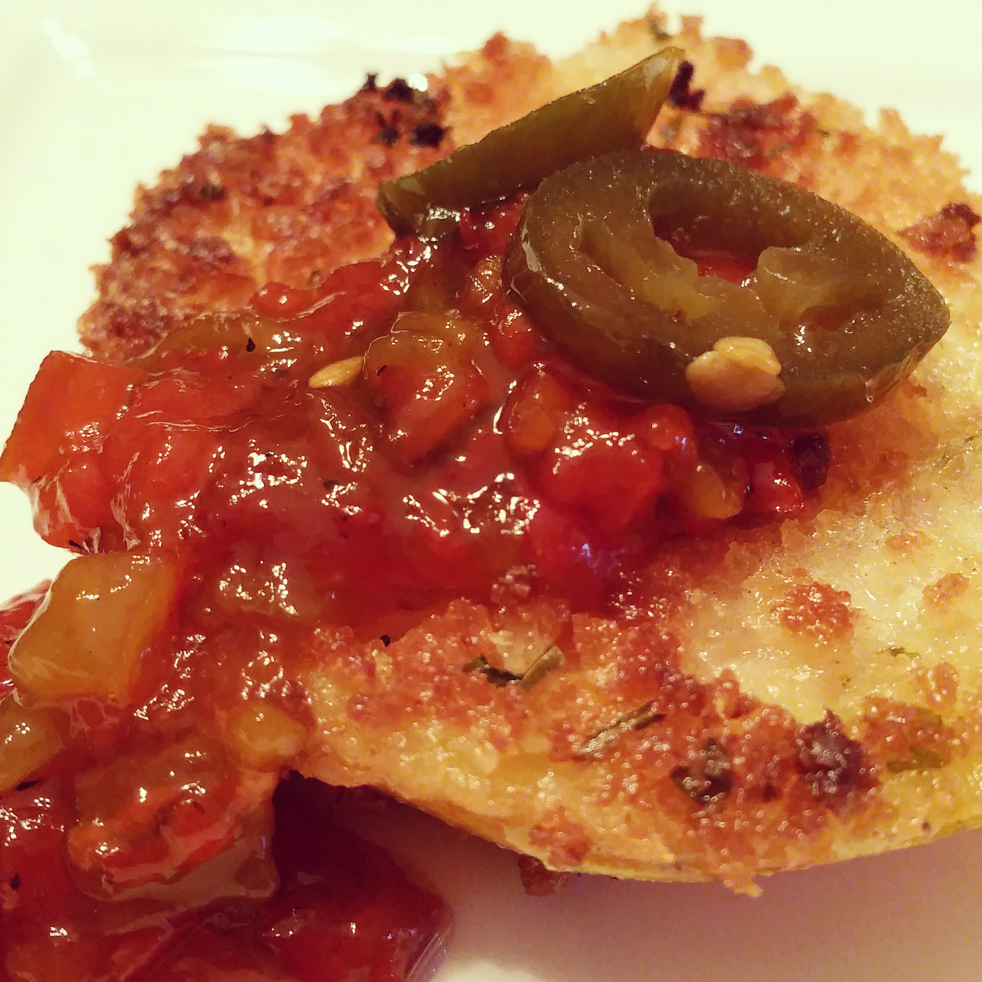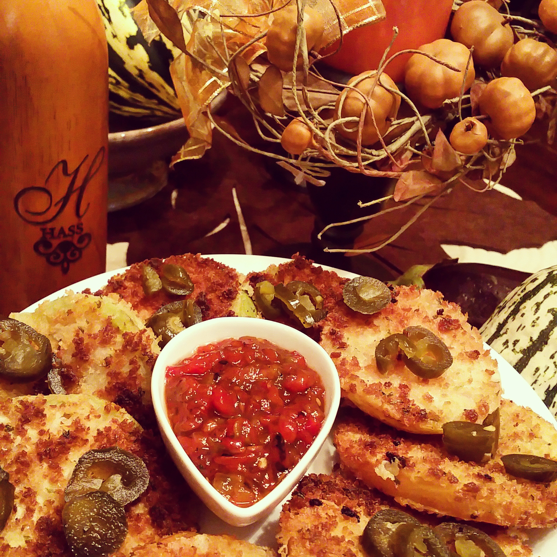Fried Green Tomatoes with Hatch Chile Jam & Candied Jalapenos