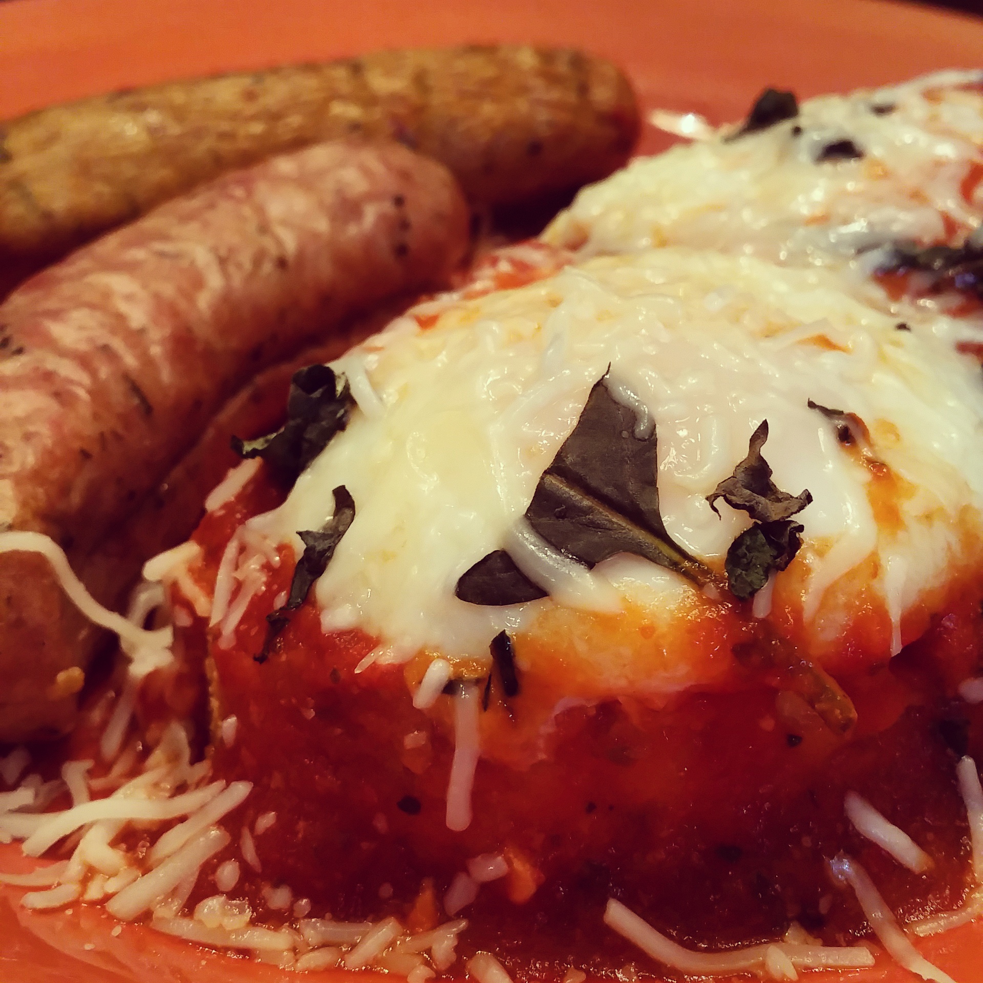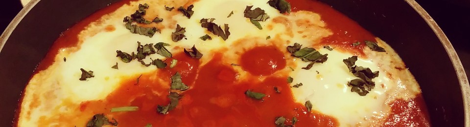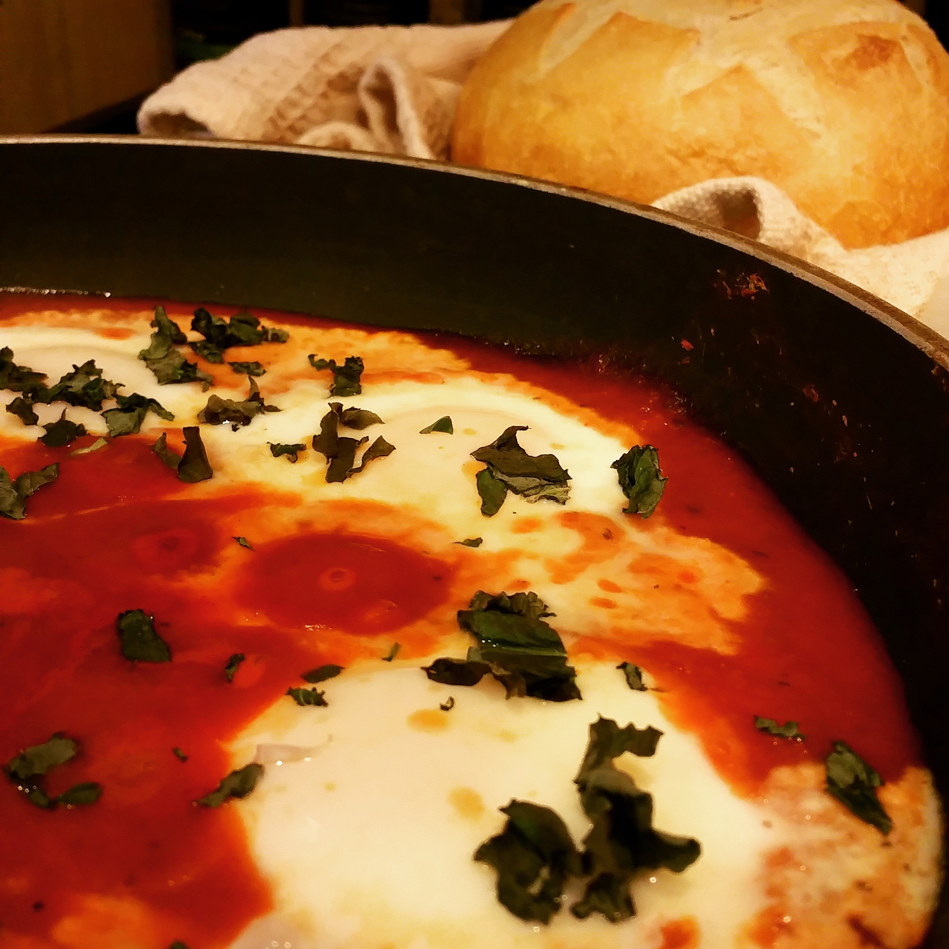 Maybe that’s how these eggs feel. Stuck in the middle…stuck in purgatory. Except their purgatory is a rich, saucy marinara loaded with fresh Basil and topped with a tangy Parmesan Reggiano. Now that’s a purgatory I can totally get behind!