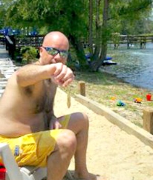 …In his swim trunks. Life is stranger than fiction y’all. 😉