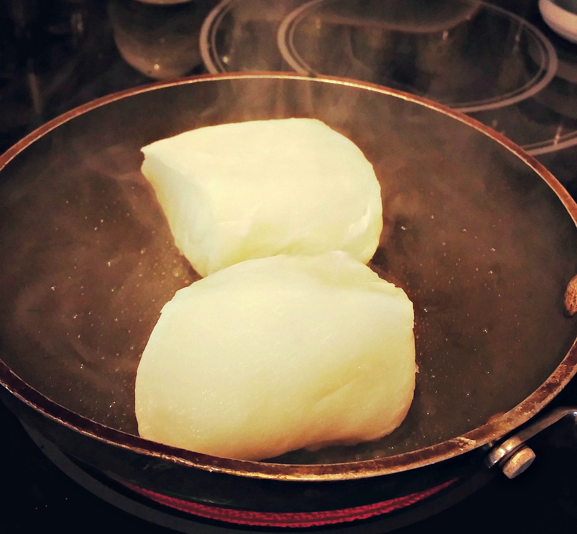 Add ginger and about 1 tsp. olive oil to a skillet. Cook on medium heat about 1 minute. Add wine and bring to a boil. Add fennel and onion. Add salt & pepper to taste. Allow to cook until tender.