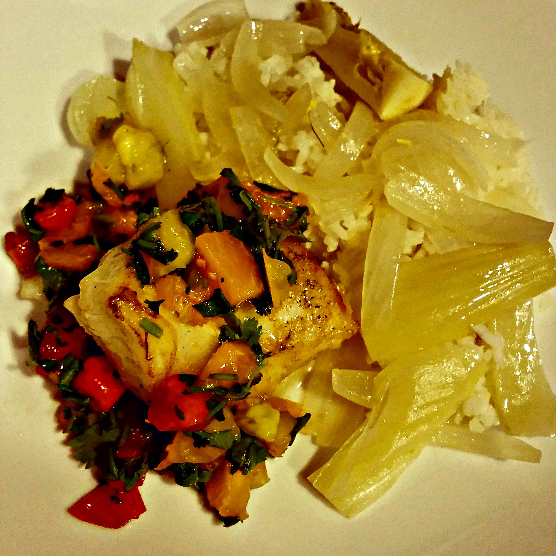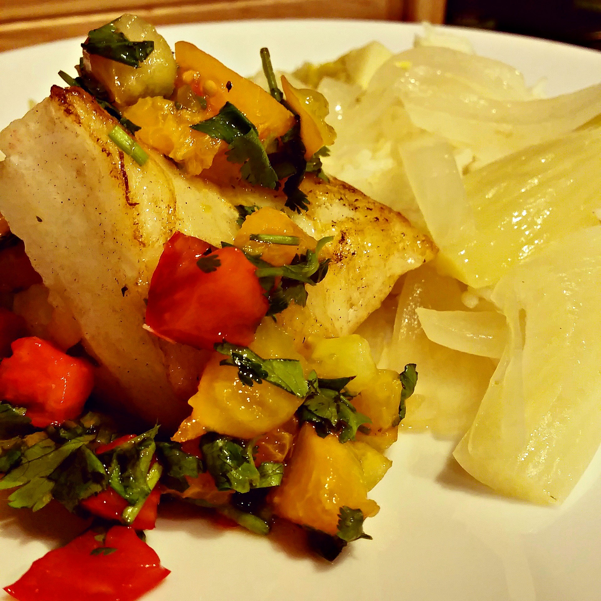 Chilean Sea Bass with Mango Salsa & Gingered Fennel