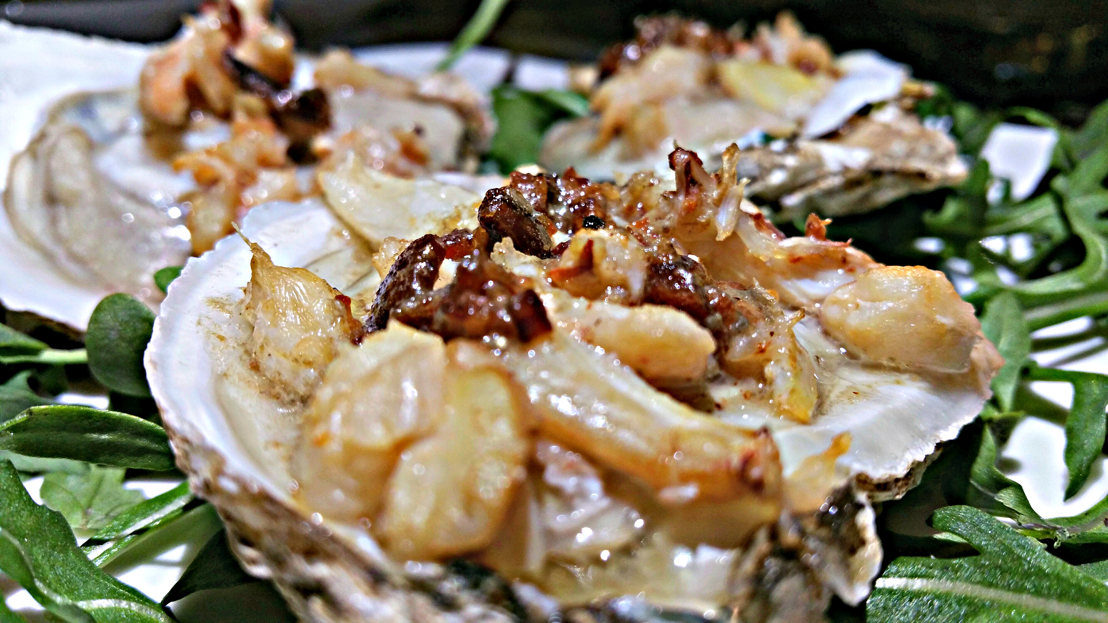 - $3 Smoked Bacon & Maryland Crab Oysters, Chargrilled with Smoky Bacon-Anchovy Butter