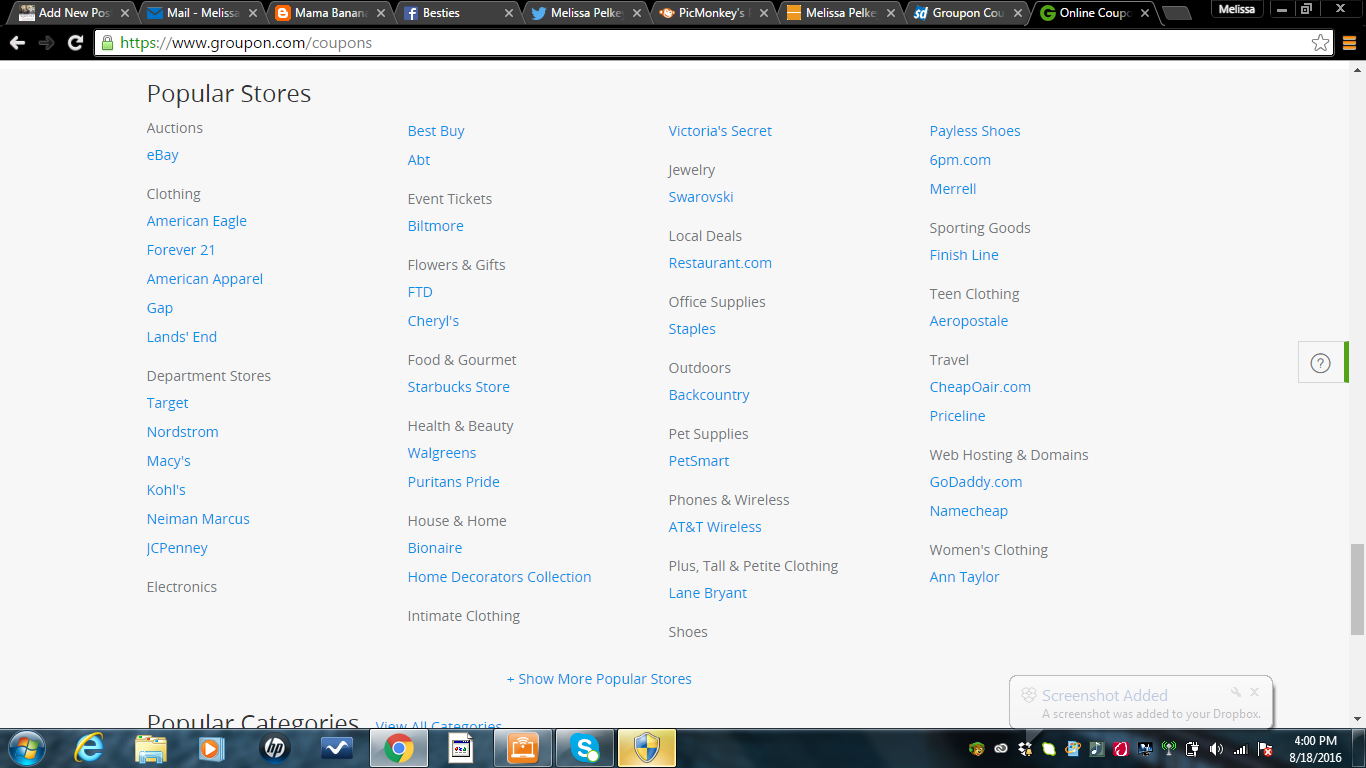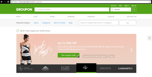 I’m certain you’re asking if these Groupons are even for places you know. Are these Groupons for places you regularly shop and for the things you would regularly buy? I’m willing to wager they are. I shop Kohl’s and Macy’s regularly and using the Groupon Coupons with my regular store coupons have offered fairly substantial savings on my recent purchases. This is just a brief example of the stores and brands you can find on Groupon.