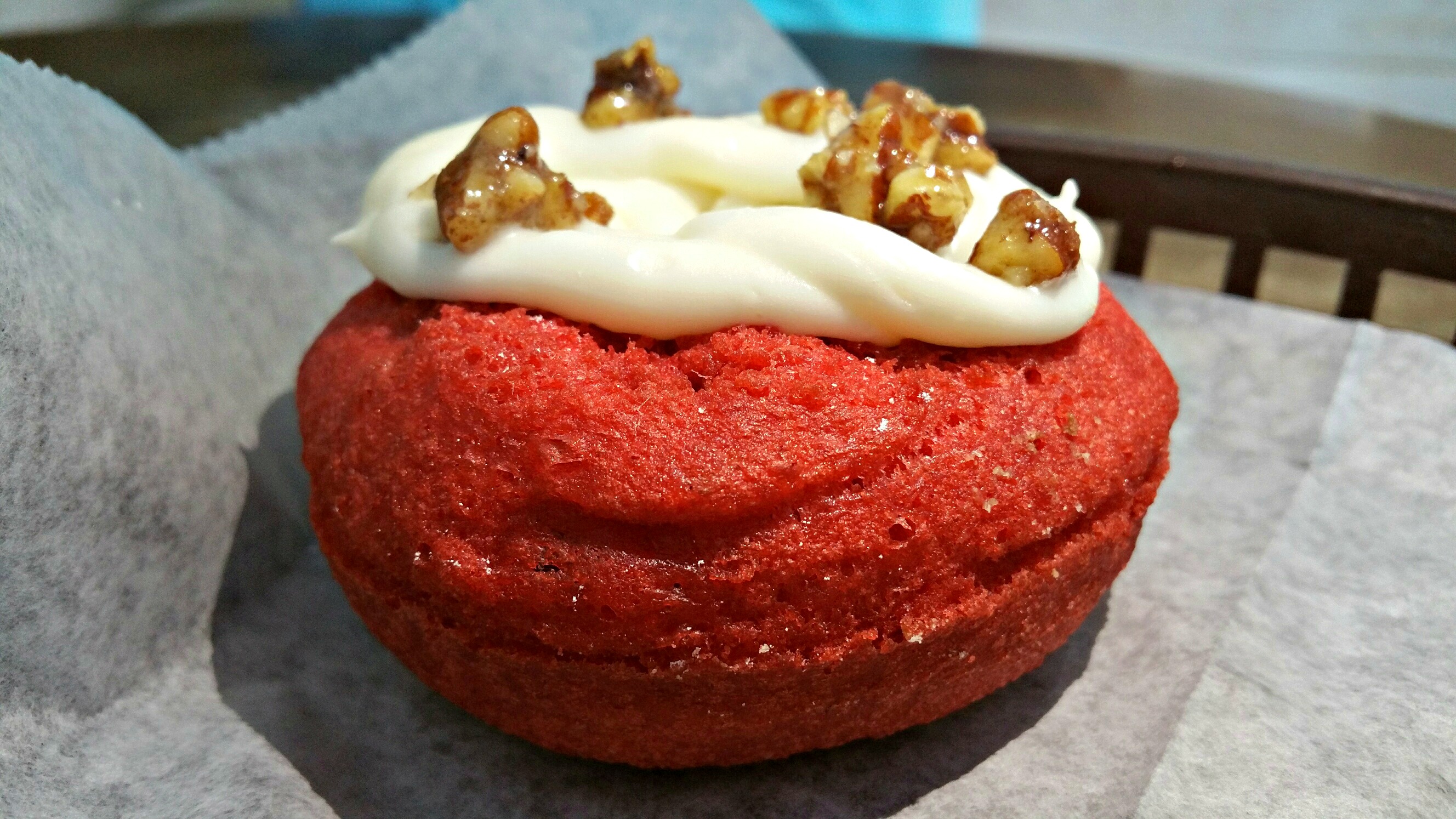 We couldn’t decide on the doughnuts so we picked a medley including Red Velvet, Reese’s Peanut Butter Cup, a White Chocolate Peach Fritter and their best selling Strawberries and Cream.