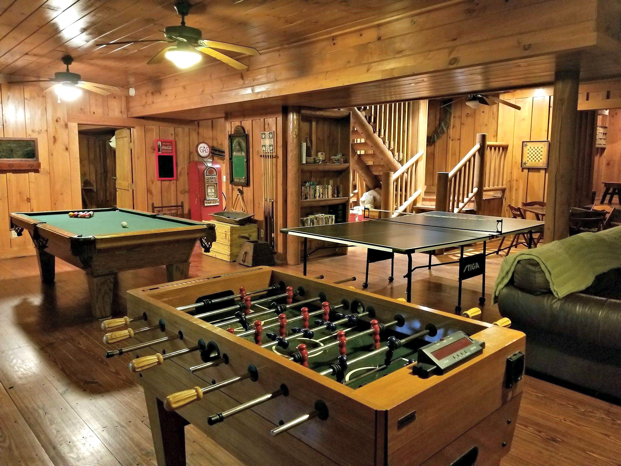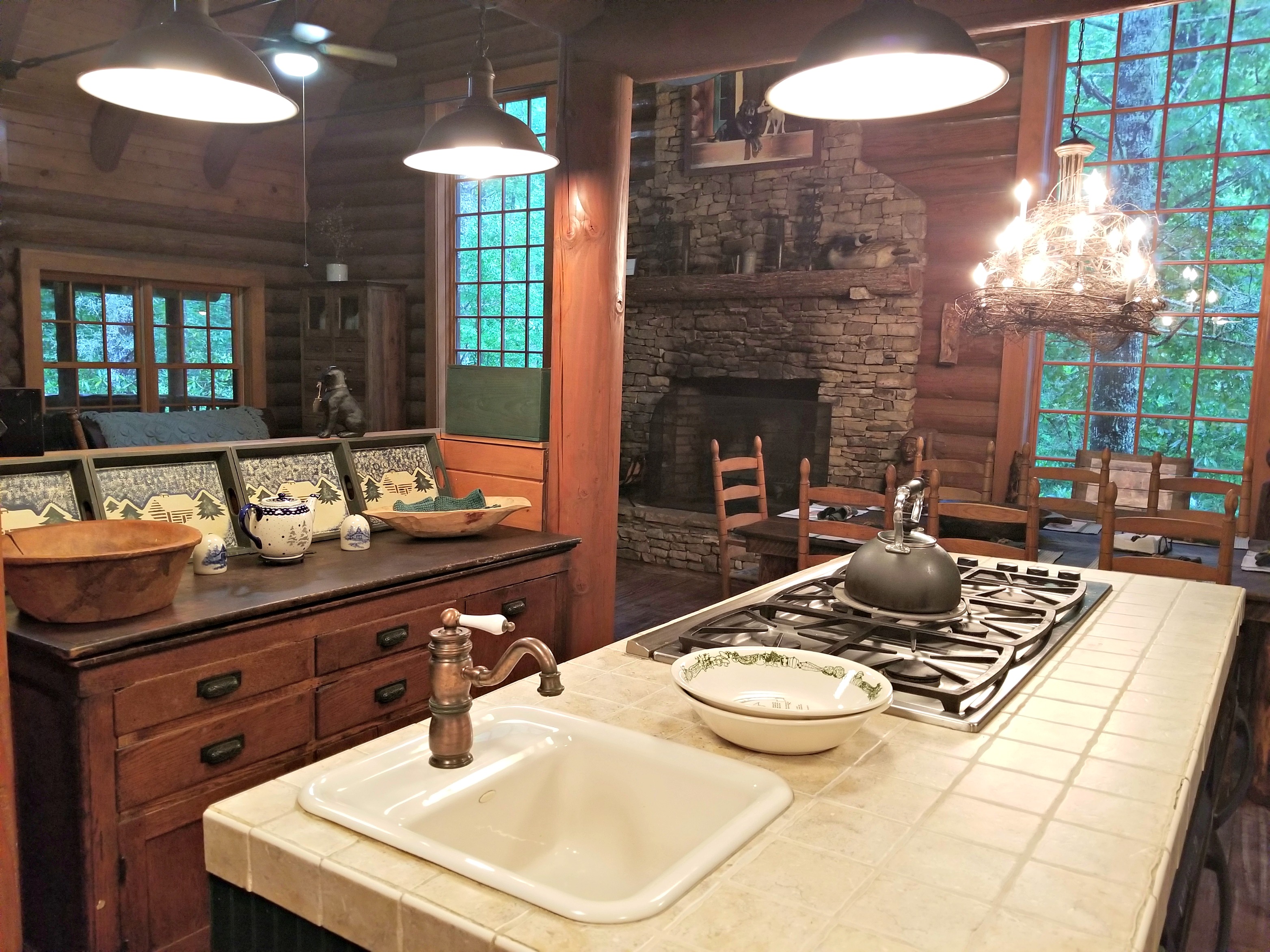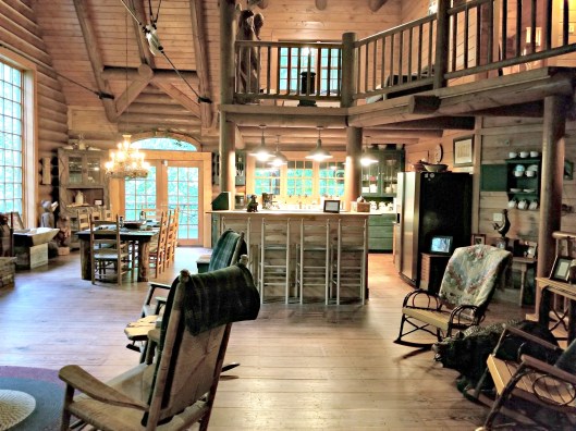 The main level of the cabin is rustic by design and reminiscent of a much simpler time. The cabin is exceptionally spacious with high, vaulted ceilings. It is an open concept with a clear view of the main level from the upstairs balcony.