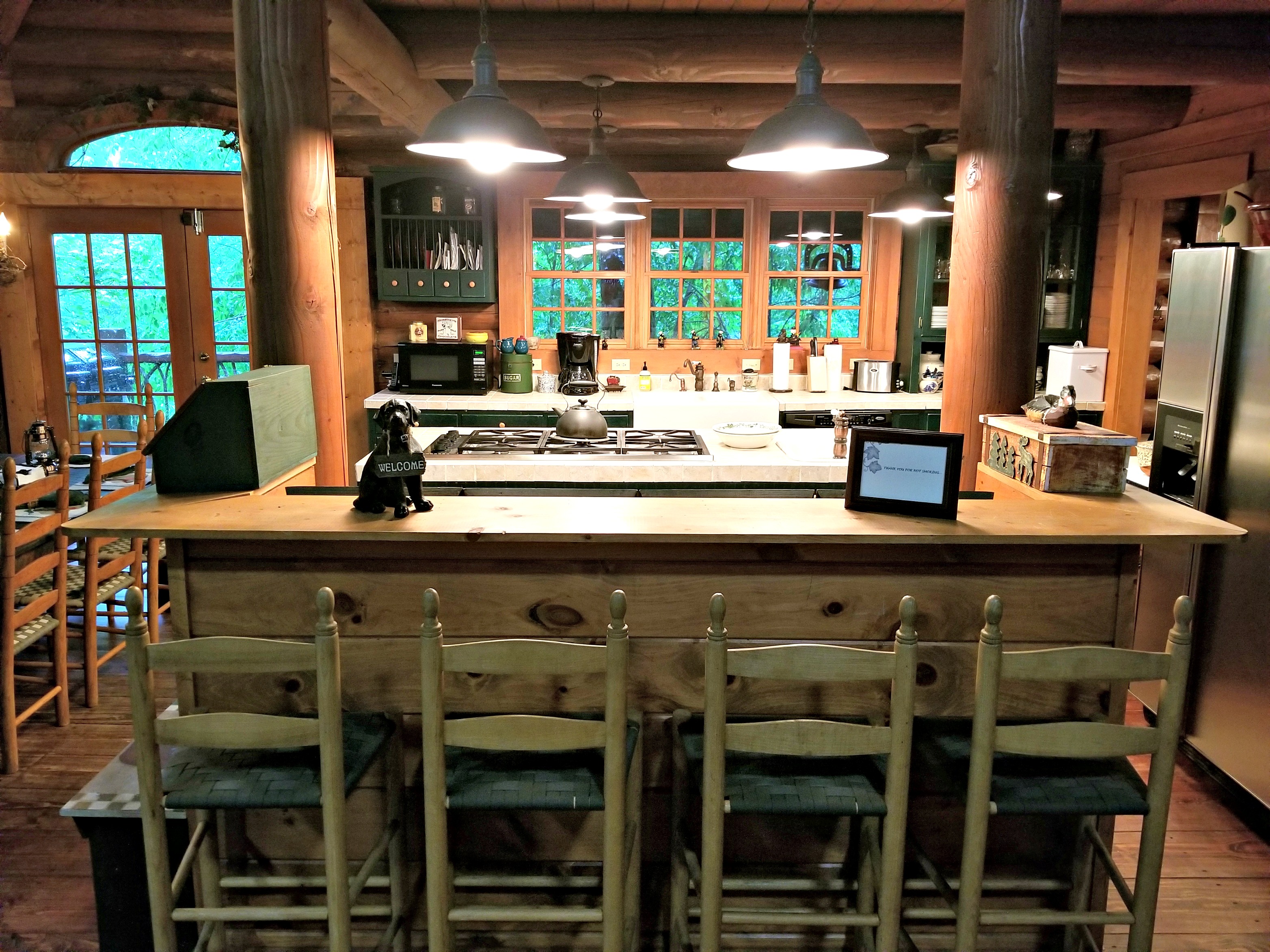 Shadow Creek has a fantastically well equipped kitchen with all of the pots, pans, sheet pans, cutting boards, kitchen appliances, cups, glasses and plates you would ever need to make delicious, home-cooked meals. We took full advantage of the kitchen making all of our breakfasts in the cabin as well as as several lunches, dinners and snacks. The cabin also comes equipped with wine glasses, ice cream glasses and assorted serving trays to make your dinners even more special.
