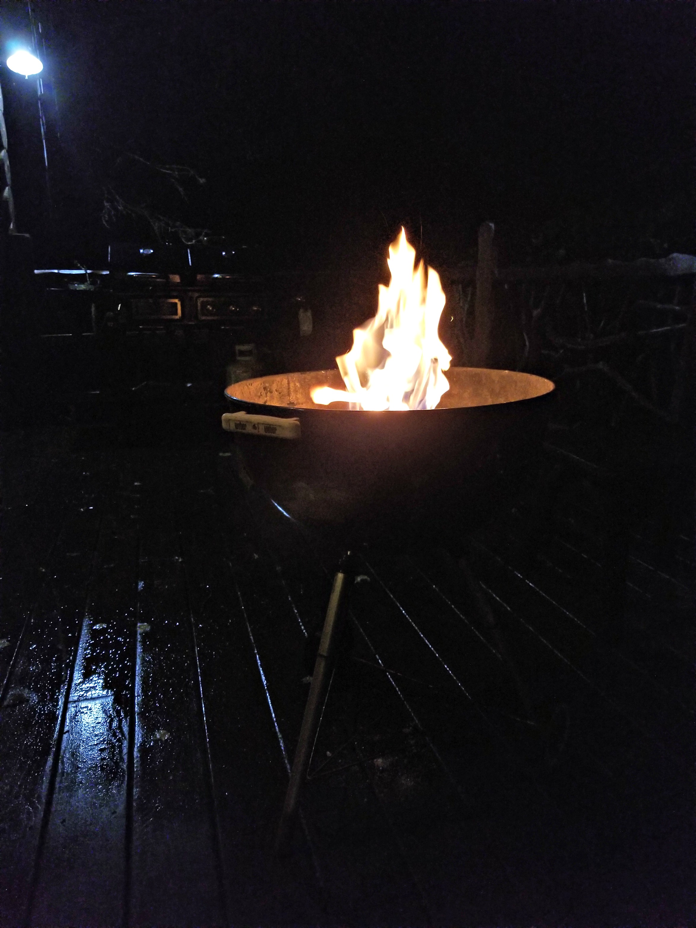 As most of our time here was rainy, we didn’t have the opportunity to enjoy smores over the great fire-pit, or walk the trails to the creek, but Hass did take a brief jaunt down and said it would be great to dip our toes in the creek and make smores… next time.