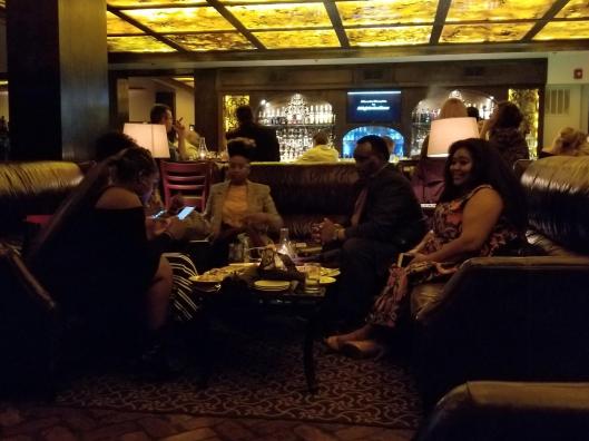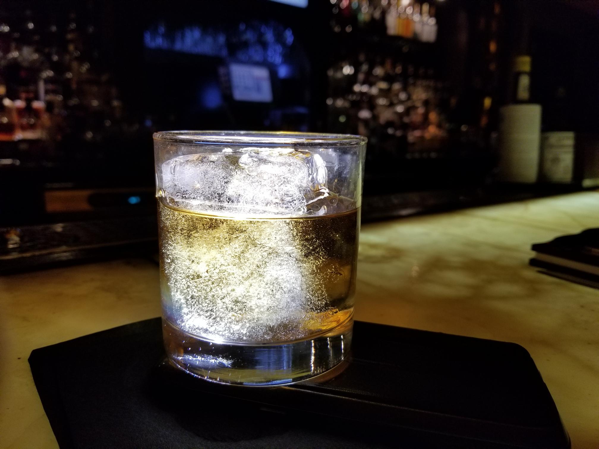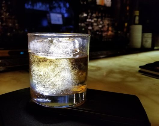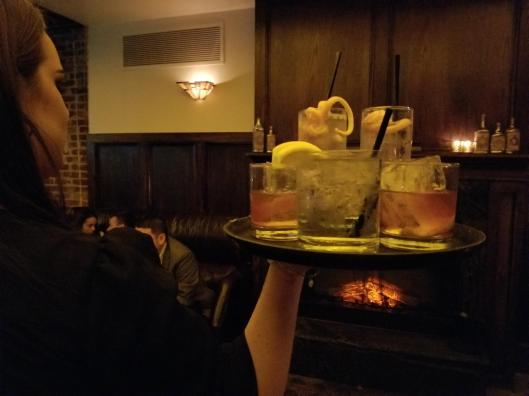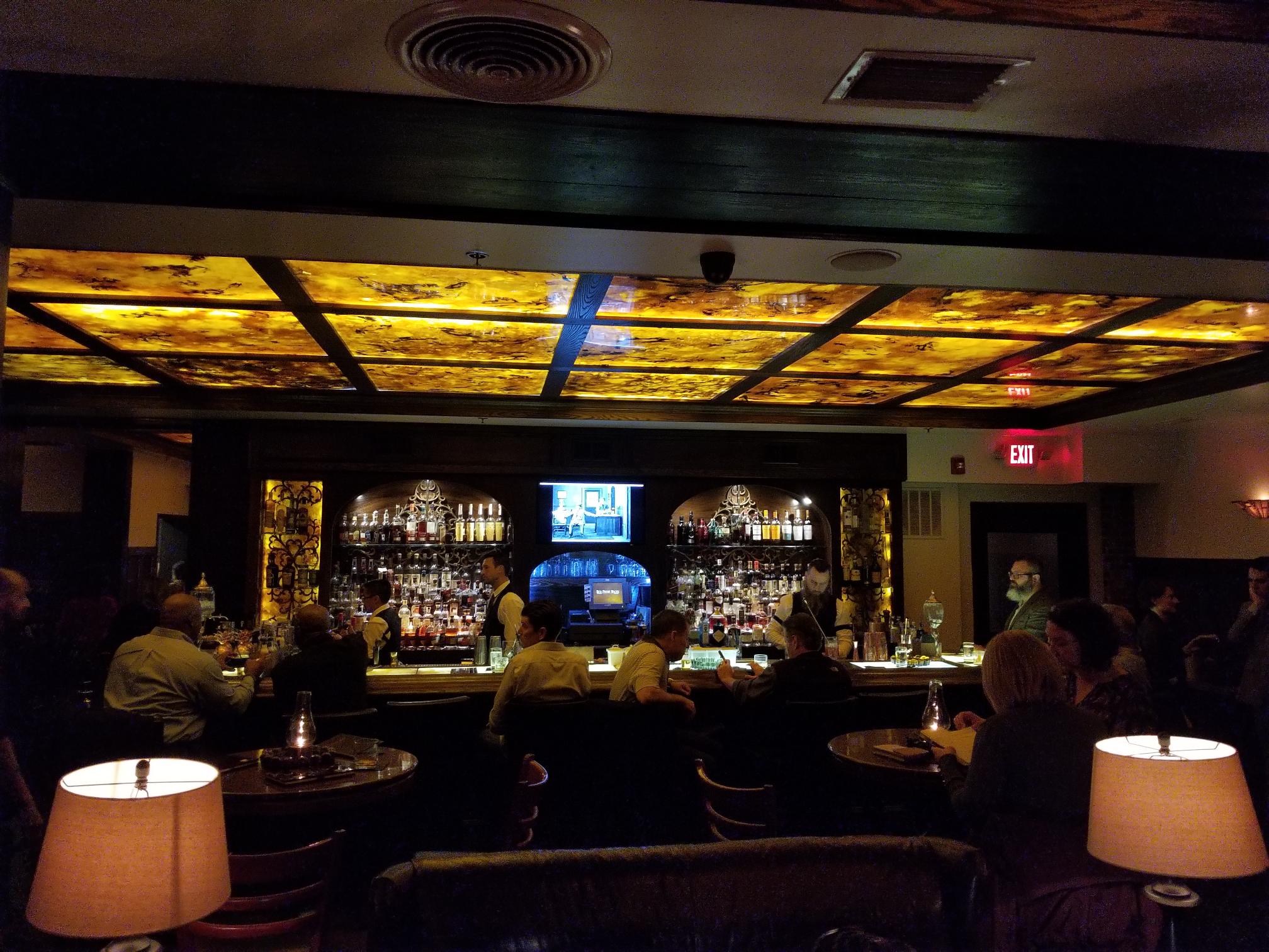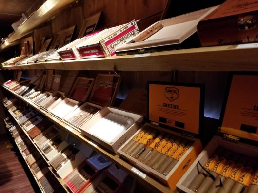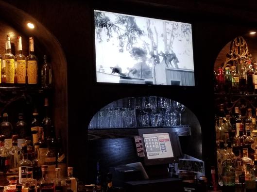 The bar itself has a nostalgic flare with both booth and bar seating, a walk in humidor and a gorgeous, real wood fireplace. You can watch retro, black and white movies above the bar.